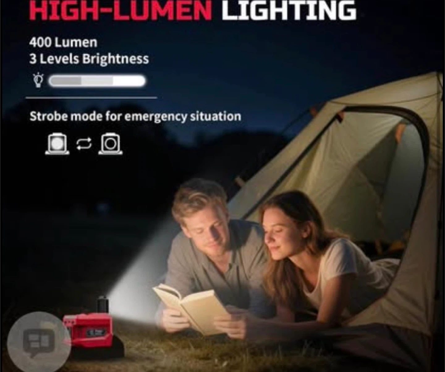 1 Pack 220W Power Inverter Compatible with Milwaukee 18V Battery, DC 18V to AC 110V-120V Portable Power Generator, Inverter with 2 USB Ports 1 Type-C 1 AC Outlet, 400 Lumen Light