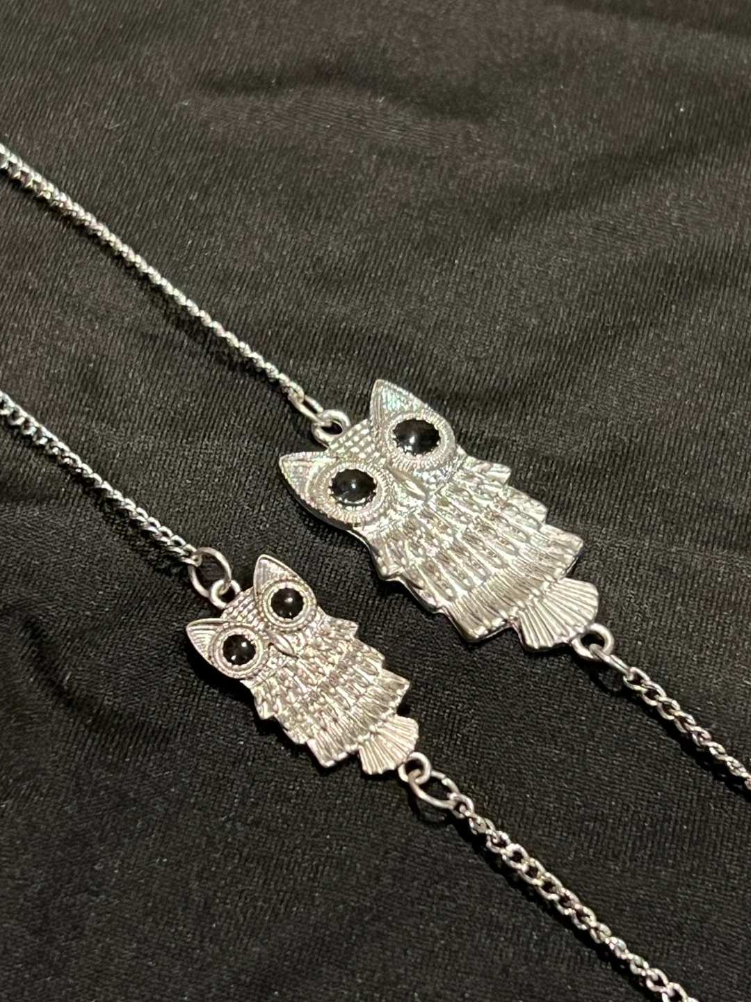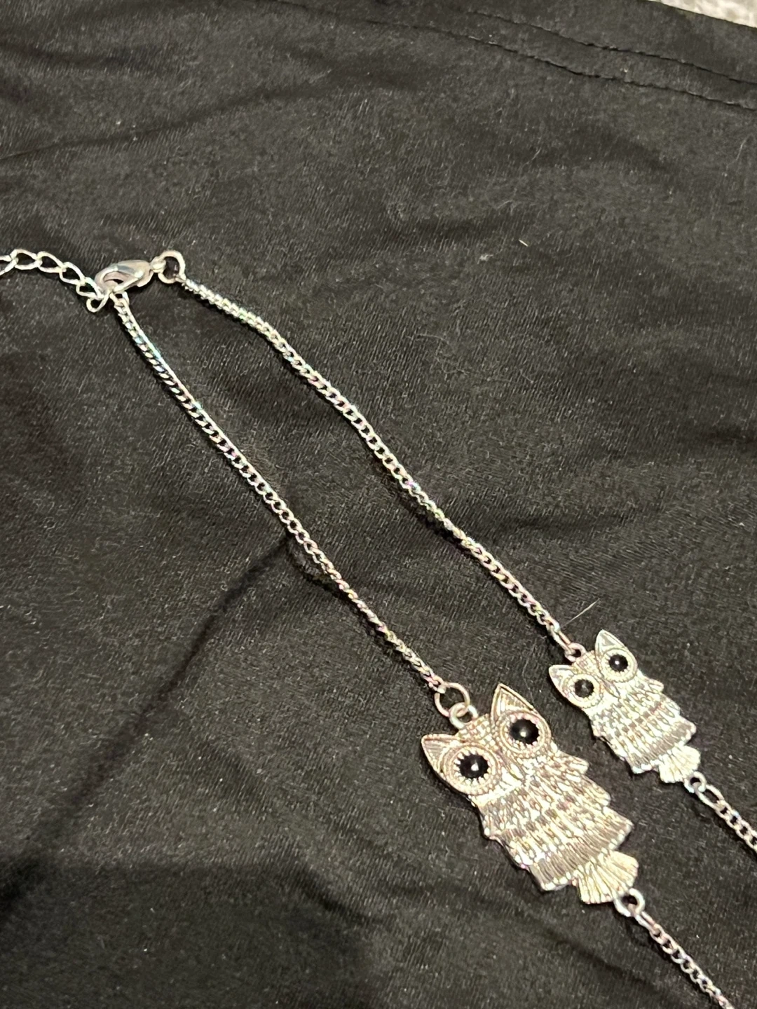 Selling a cute owl necklace! It's a silver-coloured chain with little owl charms. It's in great condition and would be a fun addition to any outfit