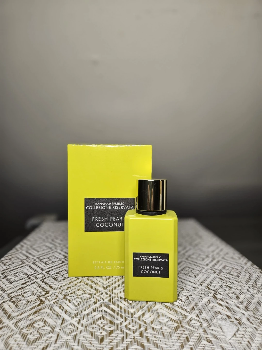 This is Banana Republic Fresh Pear & Coconut Eau de Parfum. It's a 2.5 fl. oz. / 75 ml bottle. The fragrance comes in the Collezione Riservata line.