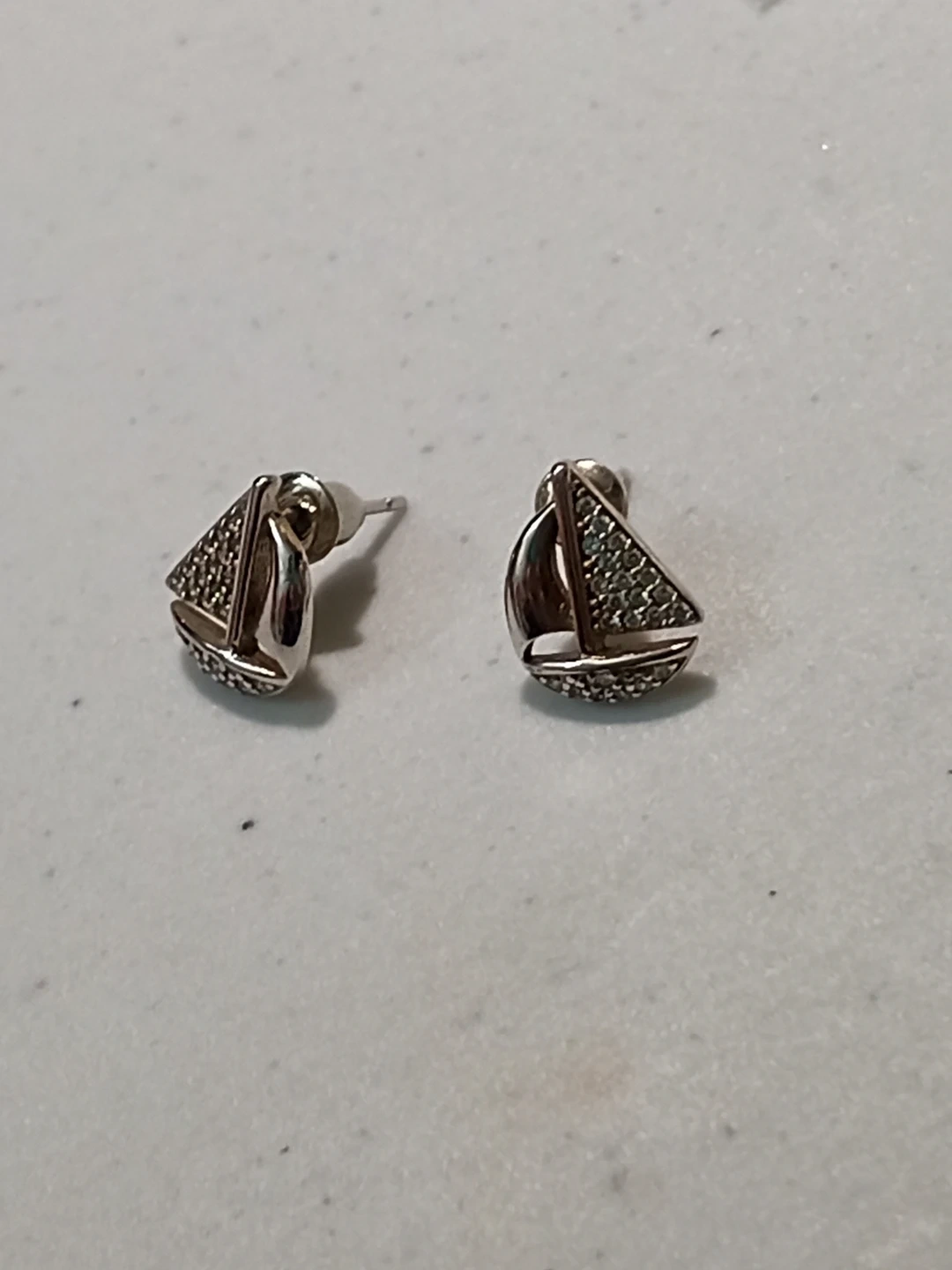 These cute sailboat stud earrings feature a silver-toned finish and are embellished with small sparkly stones. They're a fun accessory for any nautical enthusiast! Sterling silver