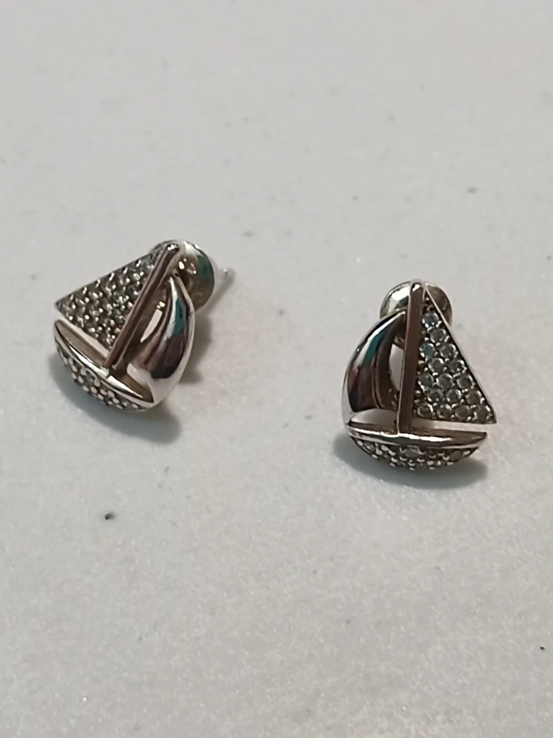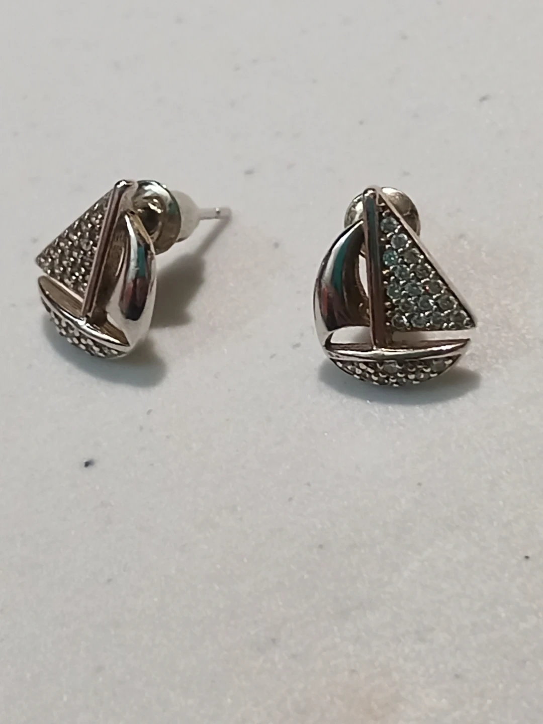 These cute sailboat stud earrings feature a silver-toned finish and are embellished with small sparkly stones. They're a fun accessory for any nautical enthusiast! Sterling silver
