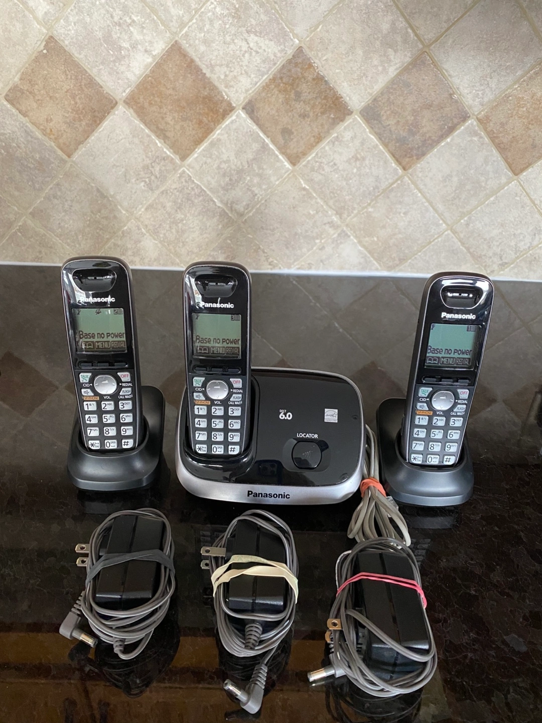 Three-handset cordless phone system. Base unit and three handsets. 3 power adaptors included. Locator feature. Good for home or office use. $15 OBO.