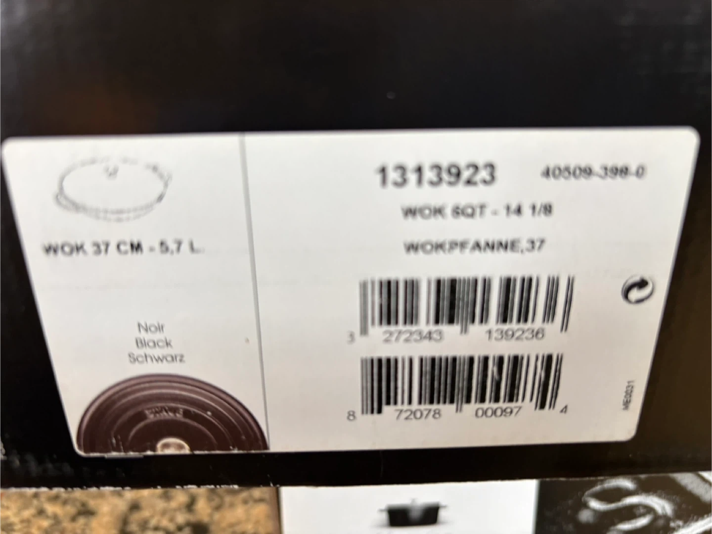 Buy & SellStaub 37cm Wok 6QT BlackStaub 37cm Wok 6QT Black$163This is a Staub 37cm wok in black. It's a 6QT capacity. Includes a glass lid and a cooking grate. Made in France.ConditionLike newWHERE TO MEETCheck LocationView MapSELLERSophiaKing City181 review0 chats·0 favorites·30 viewsSEND CHAT TO SELLERHi Sophia! I’m interested in your listing.Hi Sophia! I’m interested in your listing.Get the Karrot app to chatSign In to chat