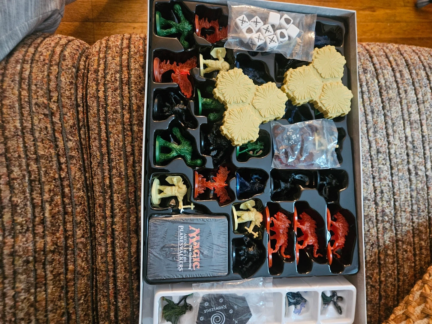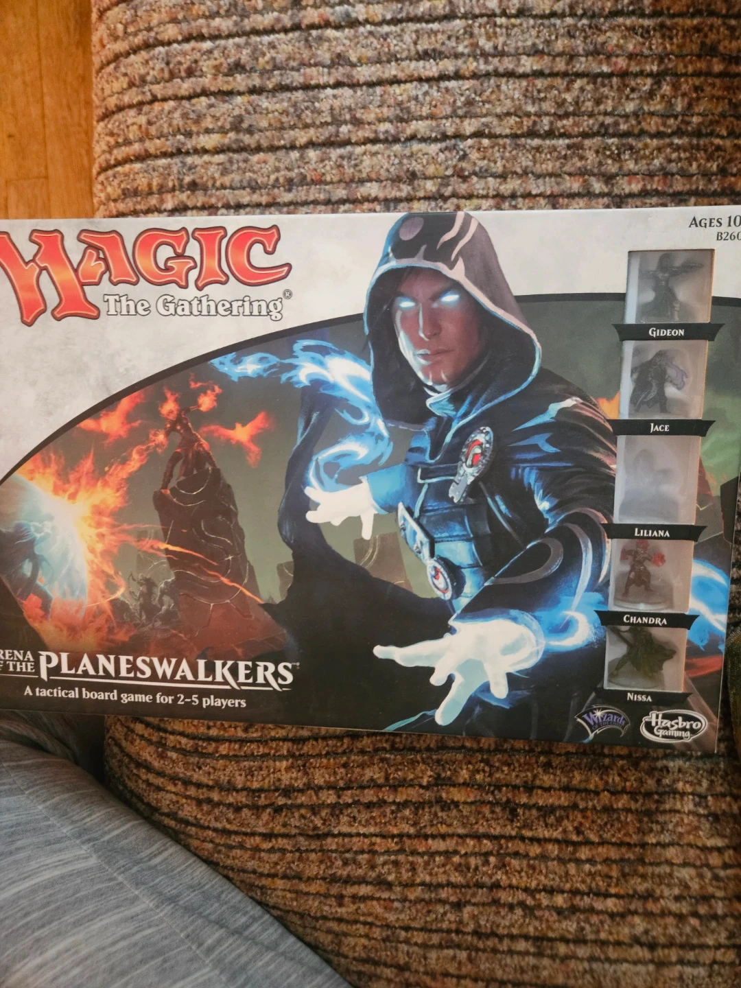 This is the Arena of the Planeswalkers board game. It's a tactical game for 2-5 players. Includes game pieces, dice, and cards.Liliana is missing.