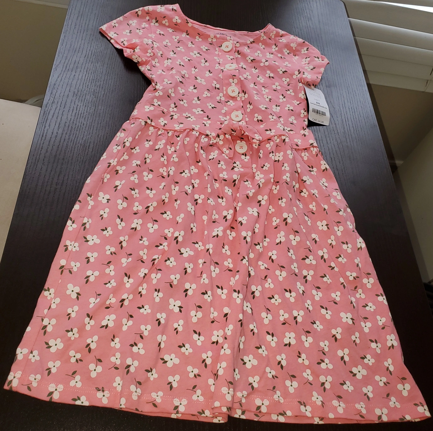 *firm price* Selling a brand new pink/floral dress in size 5 for kid/girls from Carter's. The dress has never been worn with the tag still on it. Unfortunately, my child did not have the chance to wear it.
