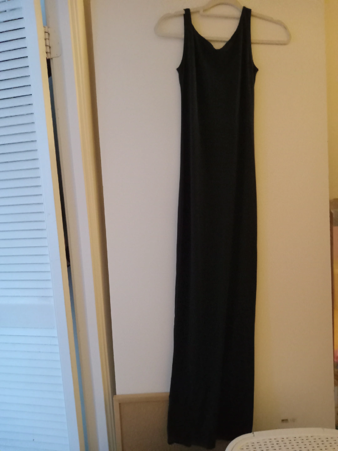 A simple black maxi dress! It's a great basic piece for layering or wearing on its own. The dress is in good condition and ready for a new home