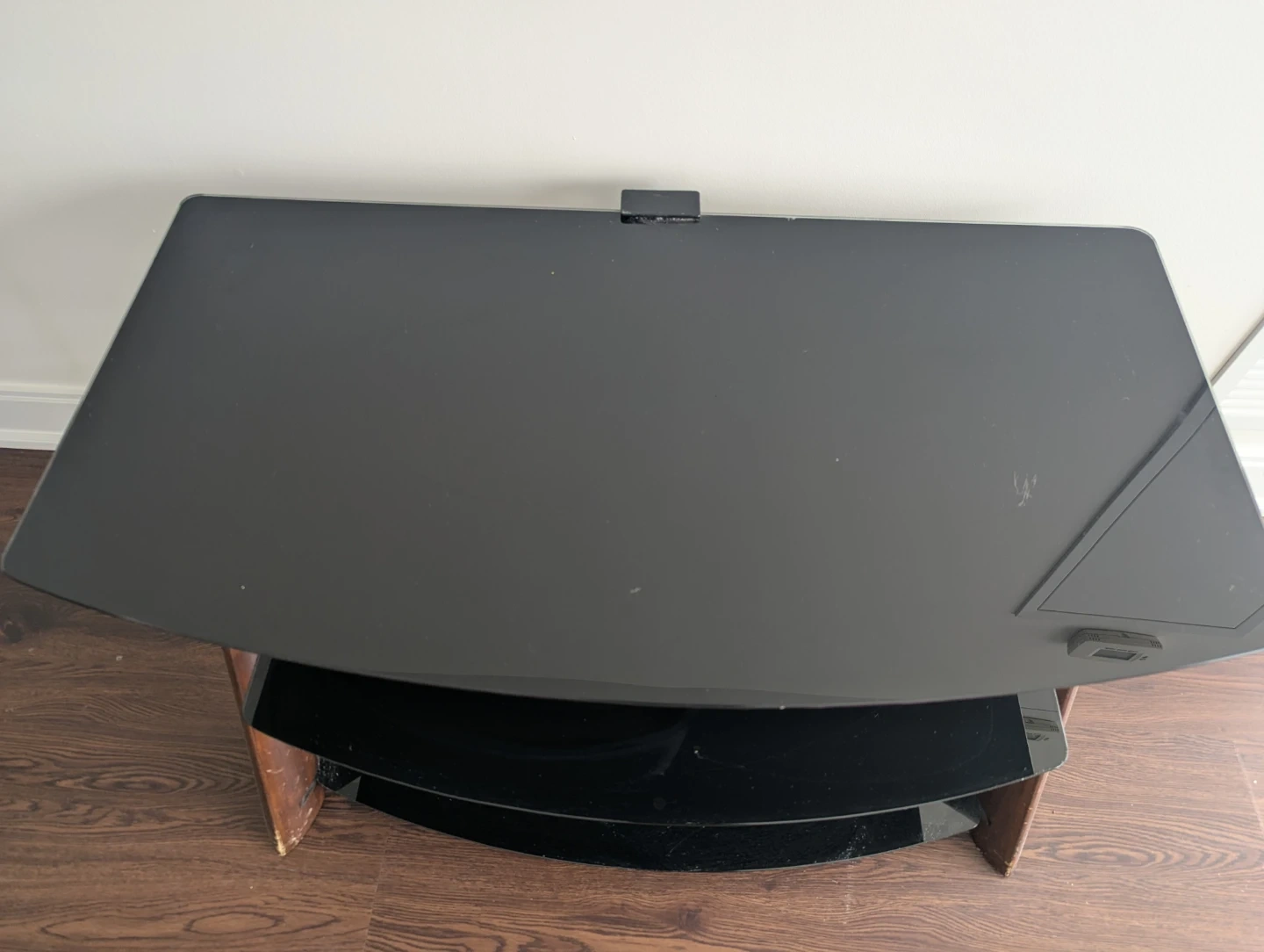 3-Tier Black Glass TV Stand with Wood Accents