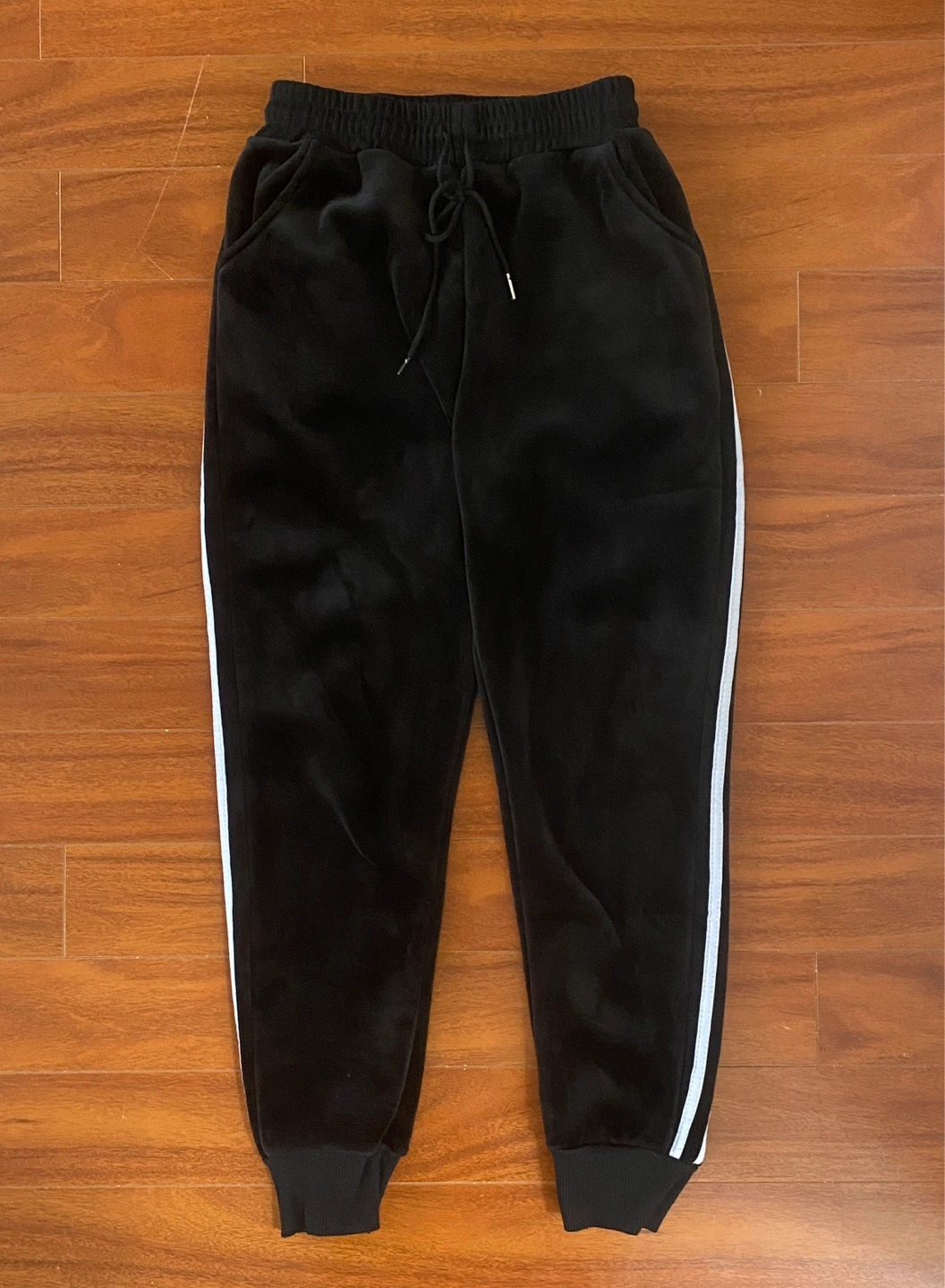 Black Velvet Joggers with White Stripes