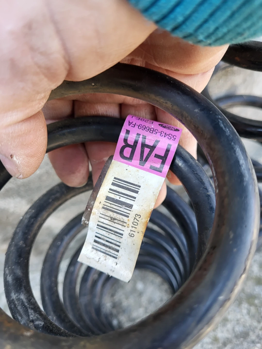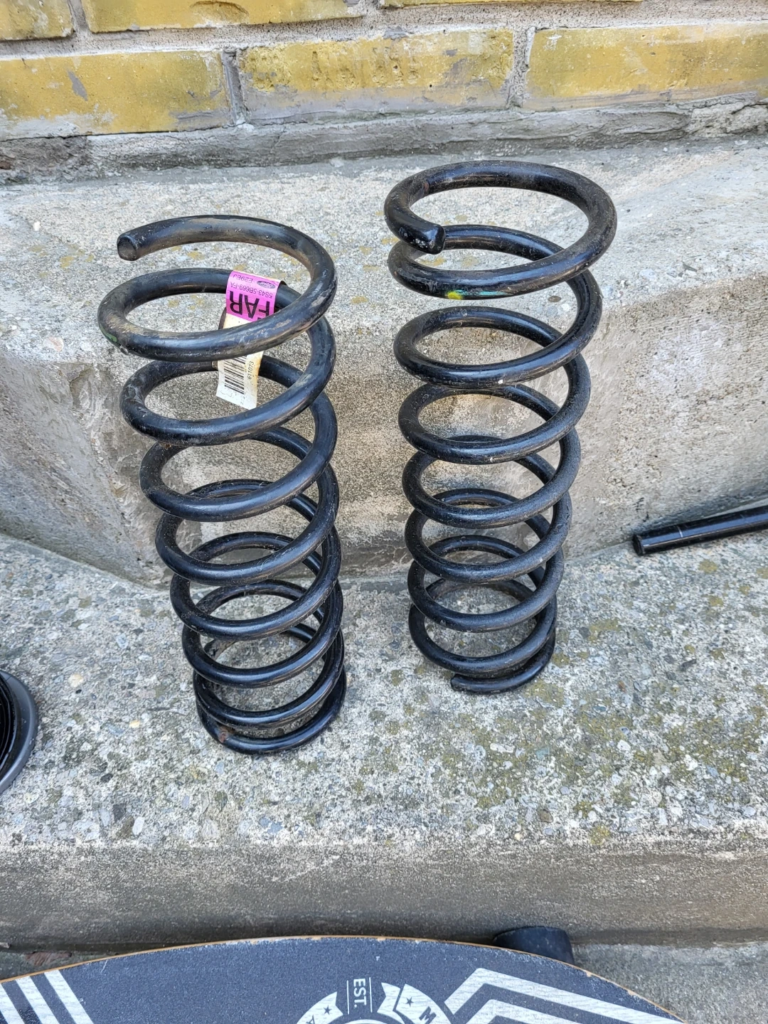 Set of two black metal suspension coil springs. Part number S53-5B669-FA is visible on one of the springs.