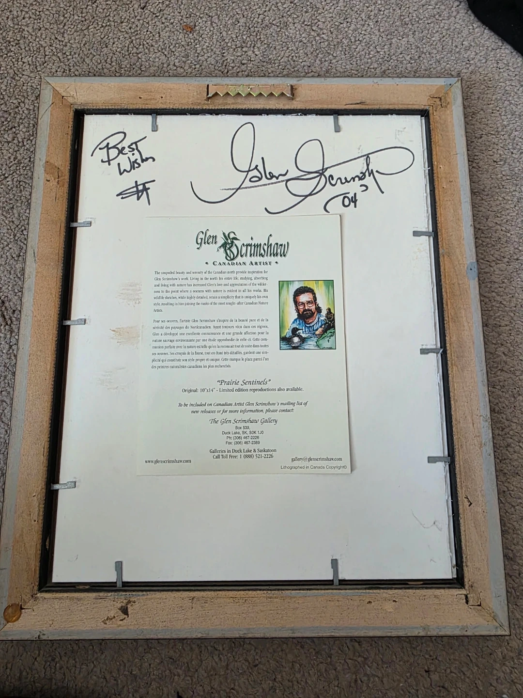 Framed art print titled "Prairie Sentinels" by Canadian artist Glen Scrimshaw. This piece depicts a lighthouse with a lightning strike in the background. Includes certificate of authenticity. Lithographed in Canada.