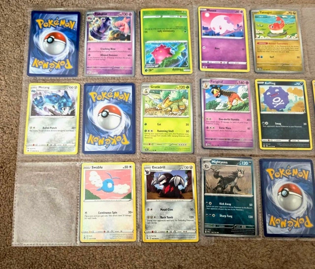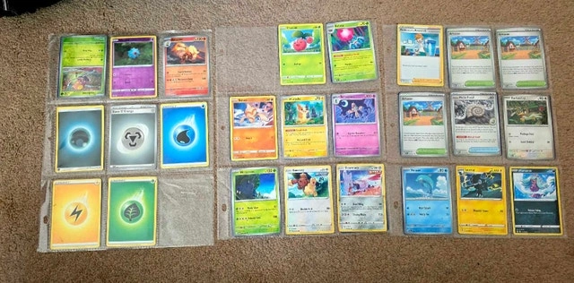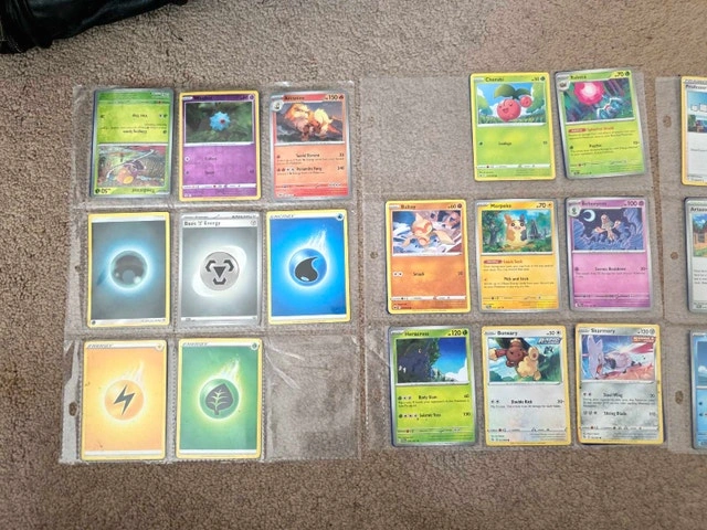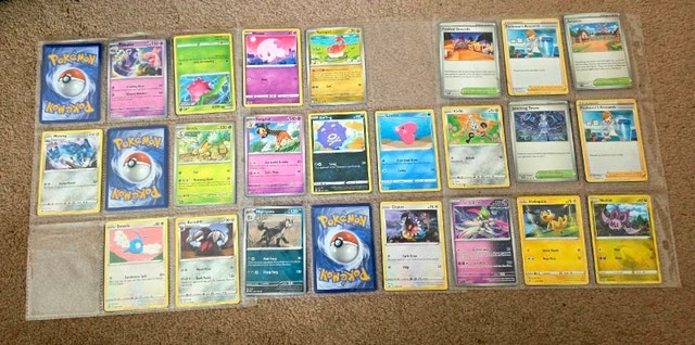 This is a binder of assorted Pokemon cards. These cards are in used condition and vary in quality. If this ad is up, it's still available. Cash accepted.