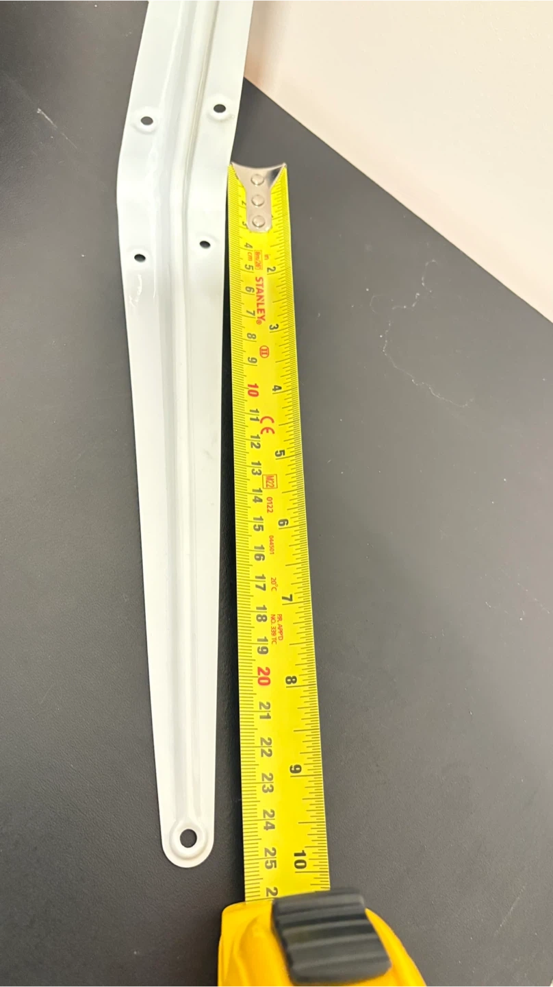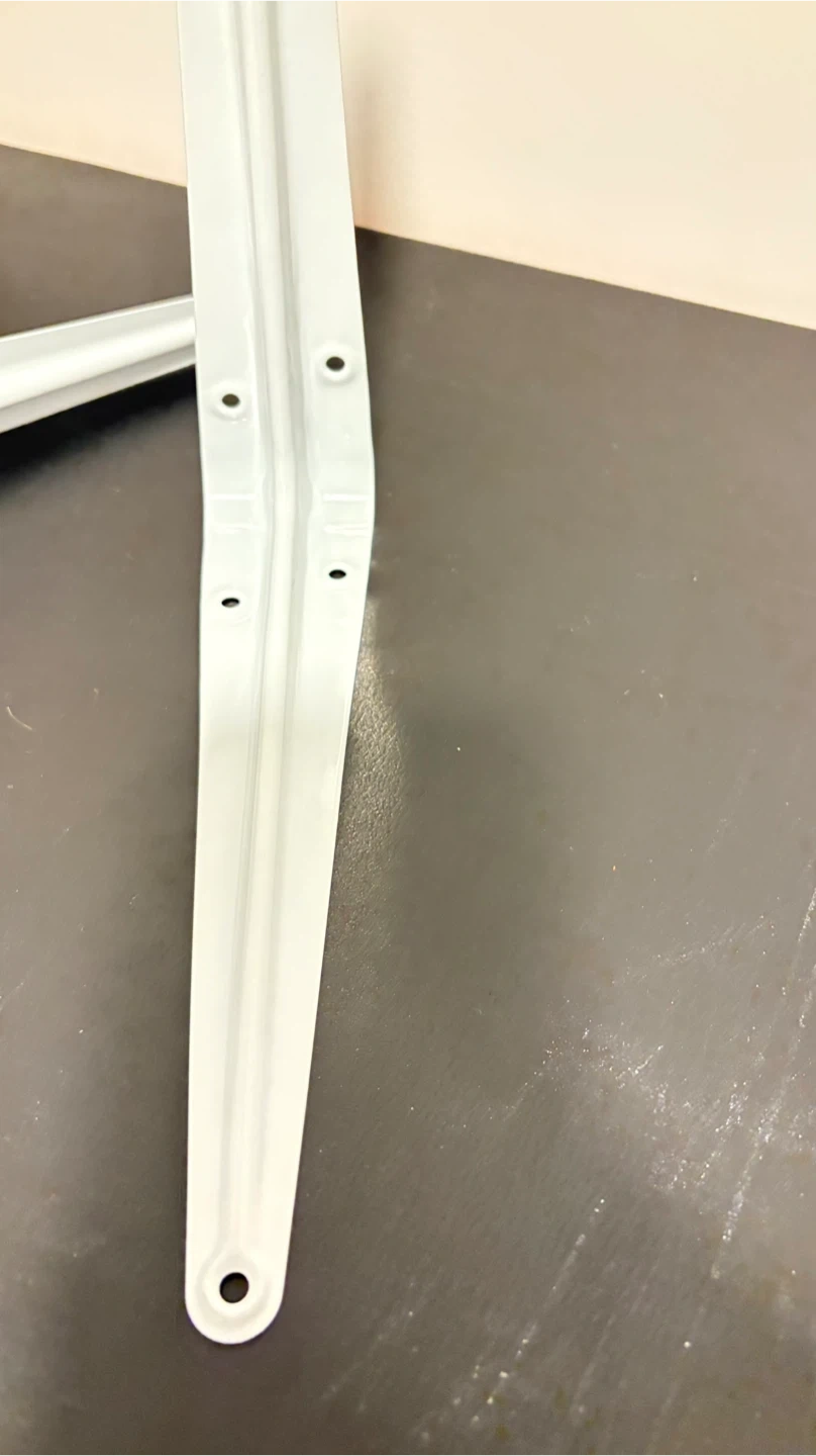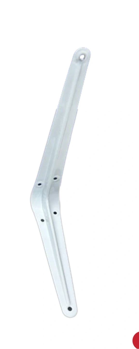 Selling a set of two white shelf brackets. These are sturdy and made of metal. They're suitable for holding shelves for storage or display.