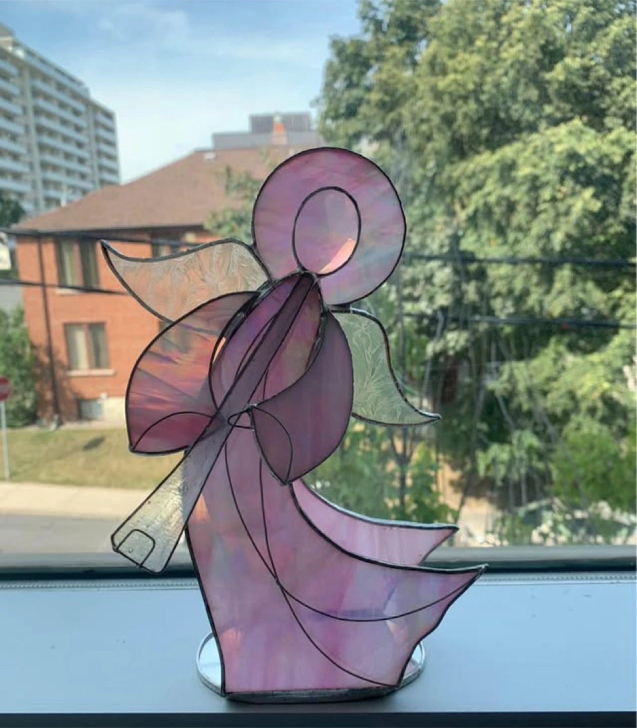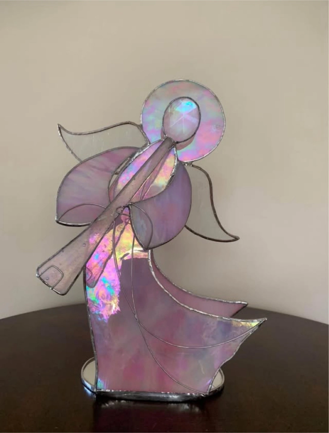 Beautiful stained glass angel figurine. Tea light holder.