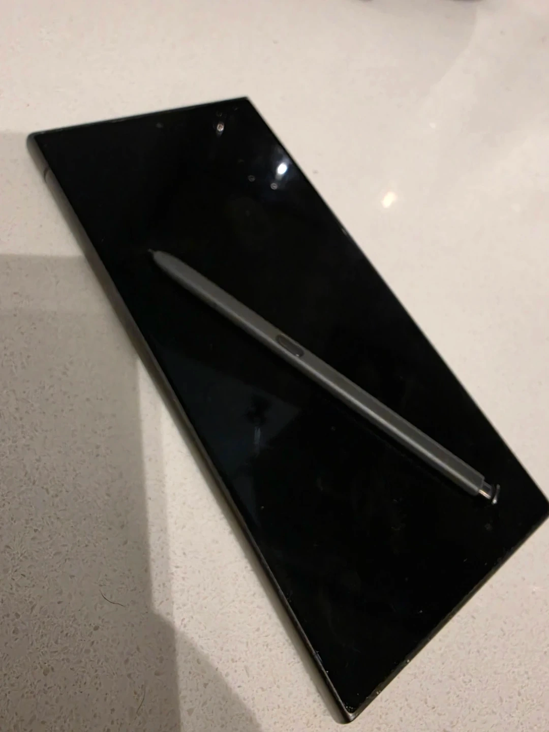Samsung Galaxy S23 Ultra smartphone. Includes S Pen stylus. This phone has a sleek design with multiple camera lenses on the back. Kept Greatly for about a year, comes with a protective case as well. No charger