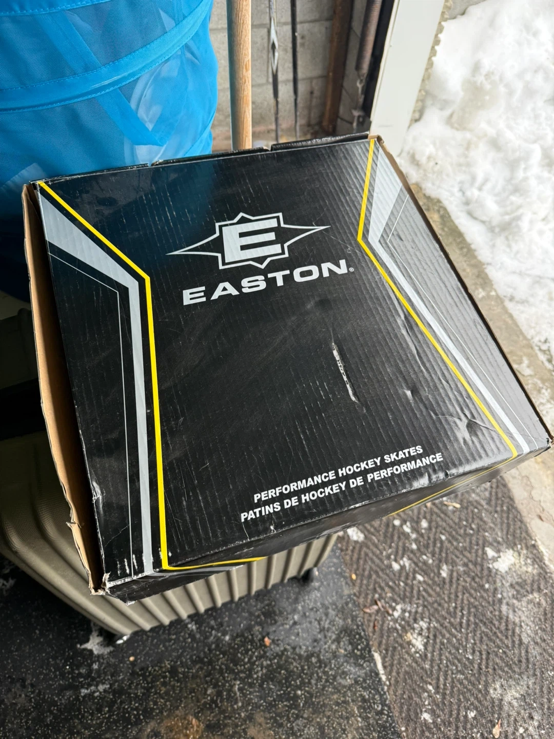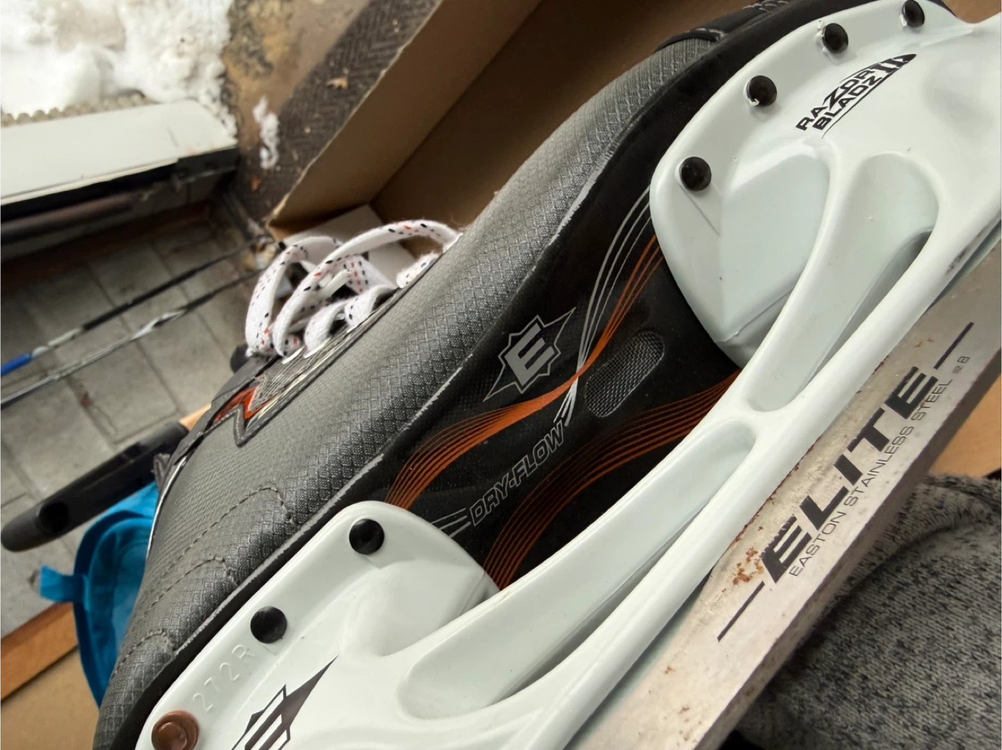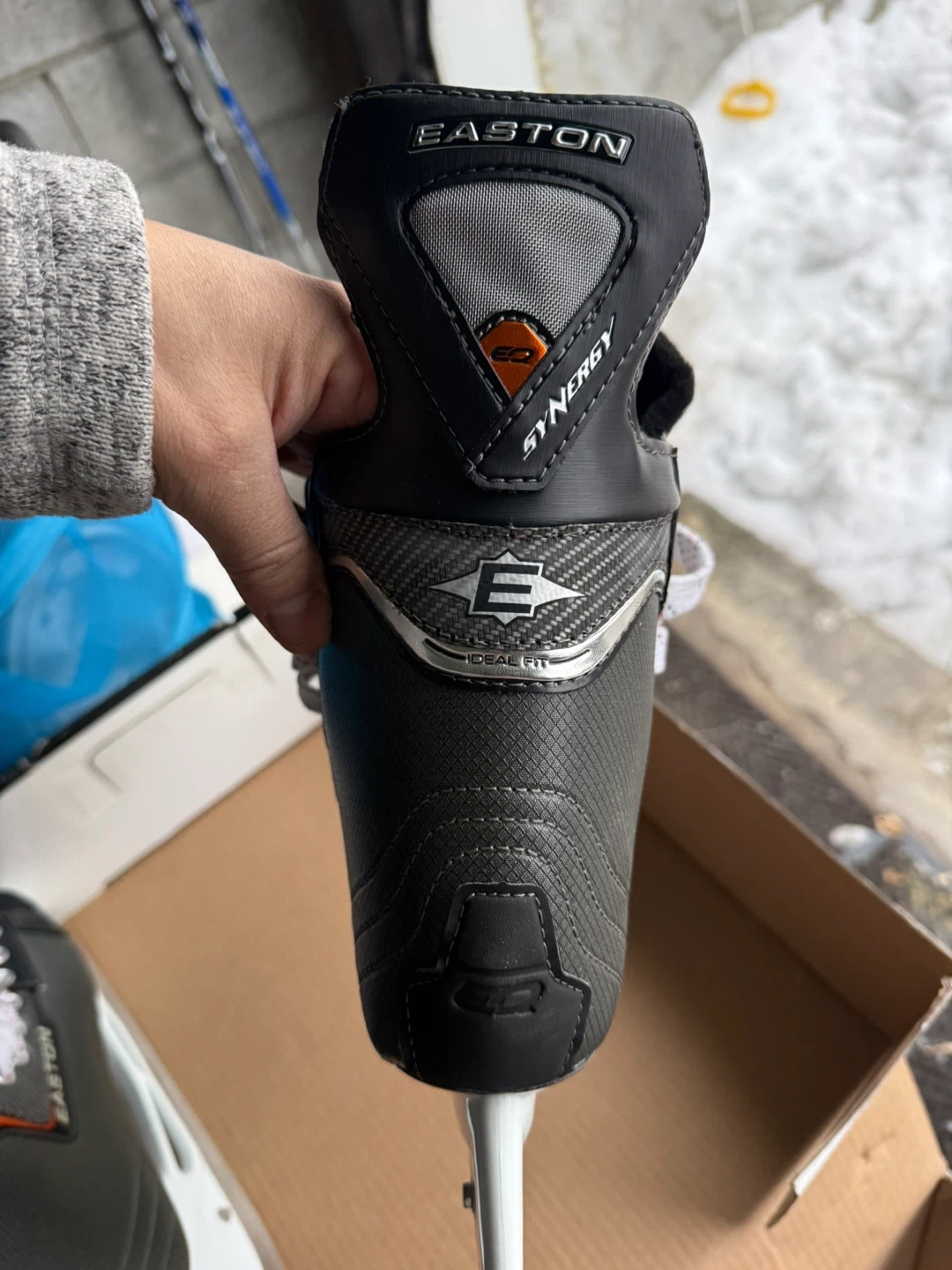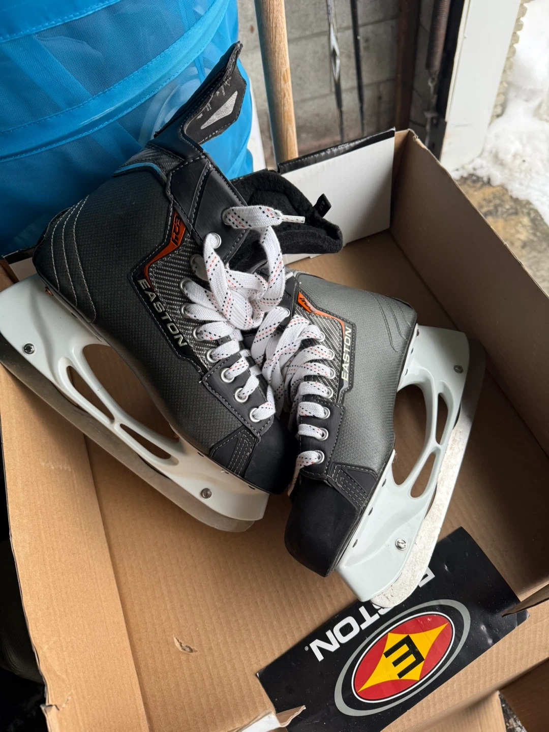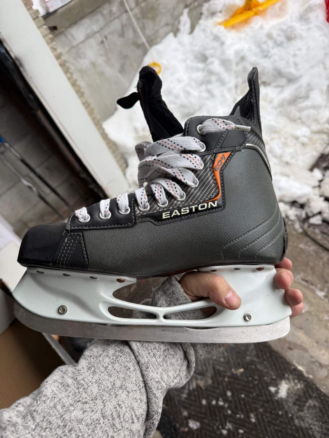 Easton Eq4 performance hockey skates in a men's size 8. These skates are designed for comfort and support on the ice. They come with the original box and are ready for the rink!