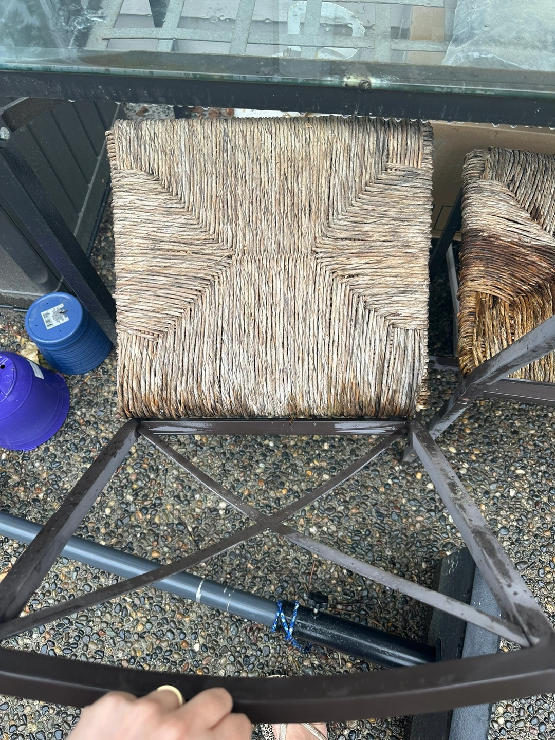- Condition: The chairs are still safe to use, but the material can be uncomfortable against the skin. I recommend using cushions for added comfort.