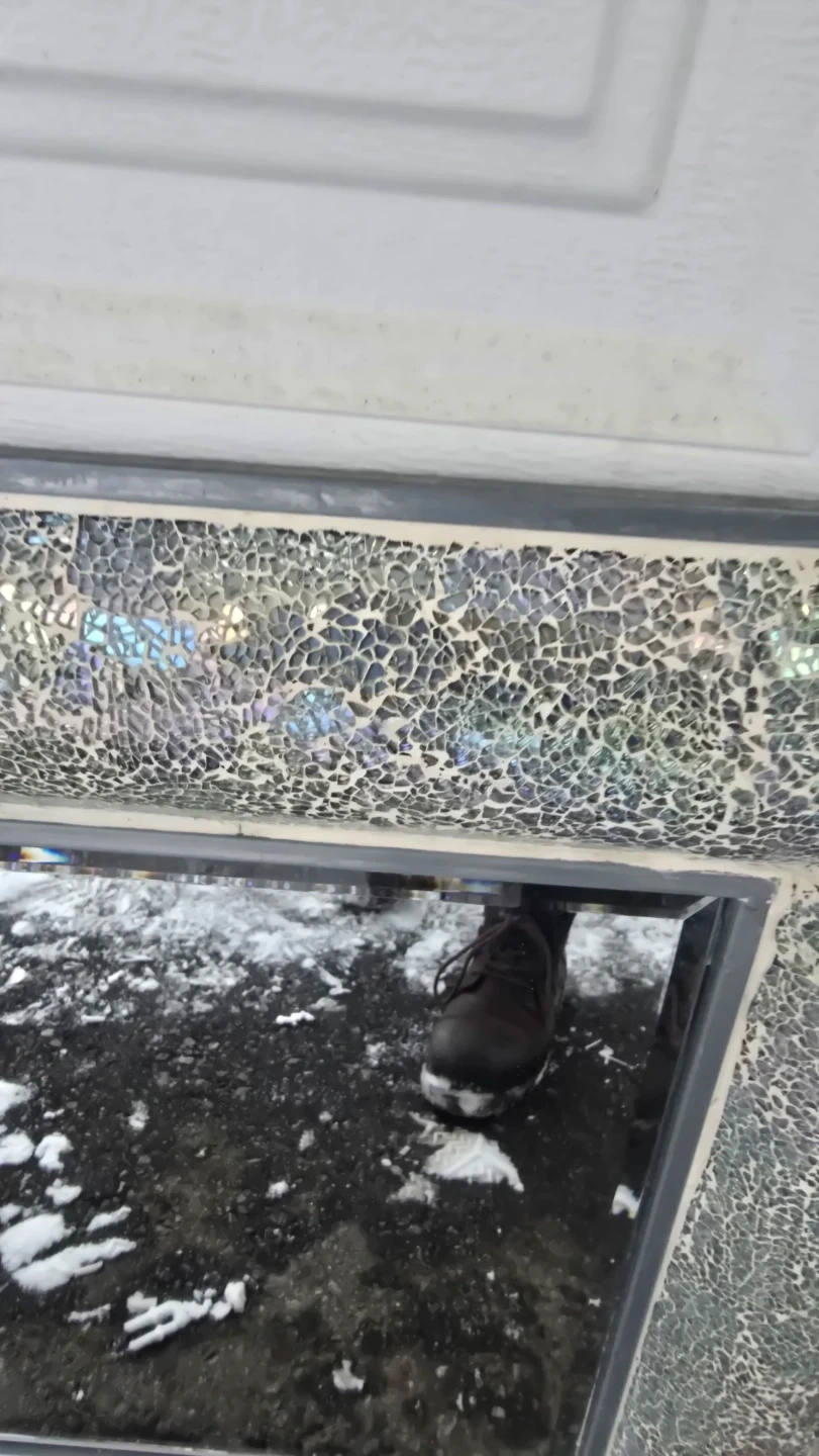 Unique square wall mirror with a textured, iridescent frame. It's a lovely piece for adding a touch of sparkle to any room. The frame has a mosaic-like finish.