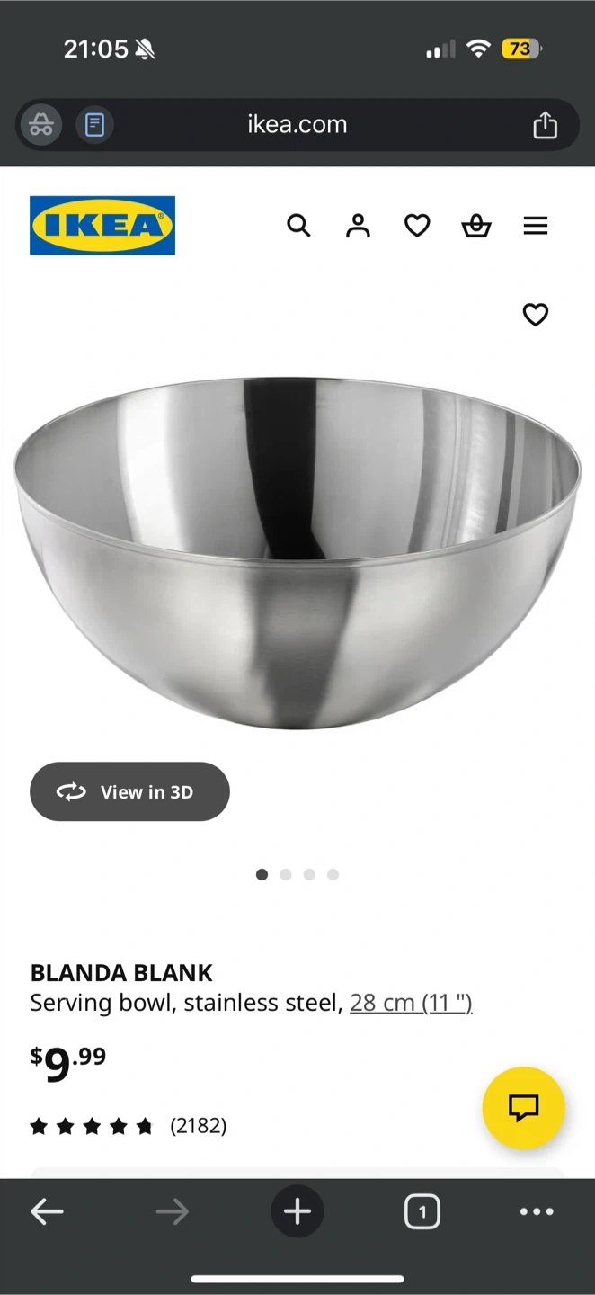 IKEA BLANDA BLANK Serving Bowl - Stainless Steel, 28 cm