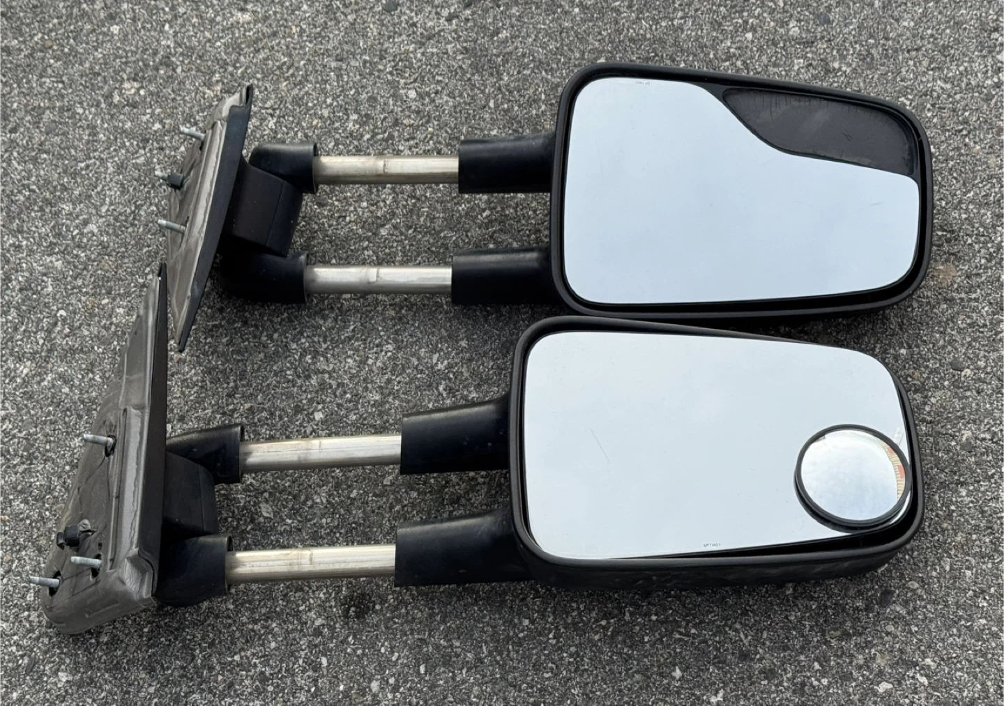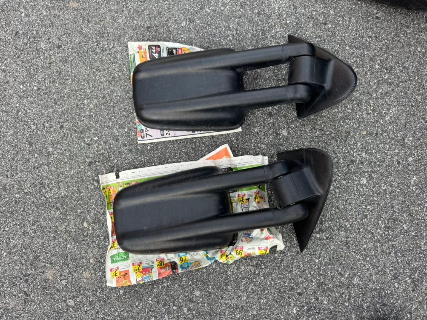These are a pair of black manual towing side mirrors. The mirrors extend outwards on metal arms, suitable for towing vehicles. These came off a 99 GMC 1500 pick up truck. Located in . $80 for the pair . Penticton