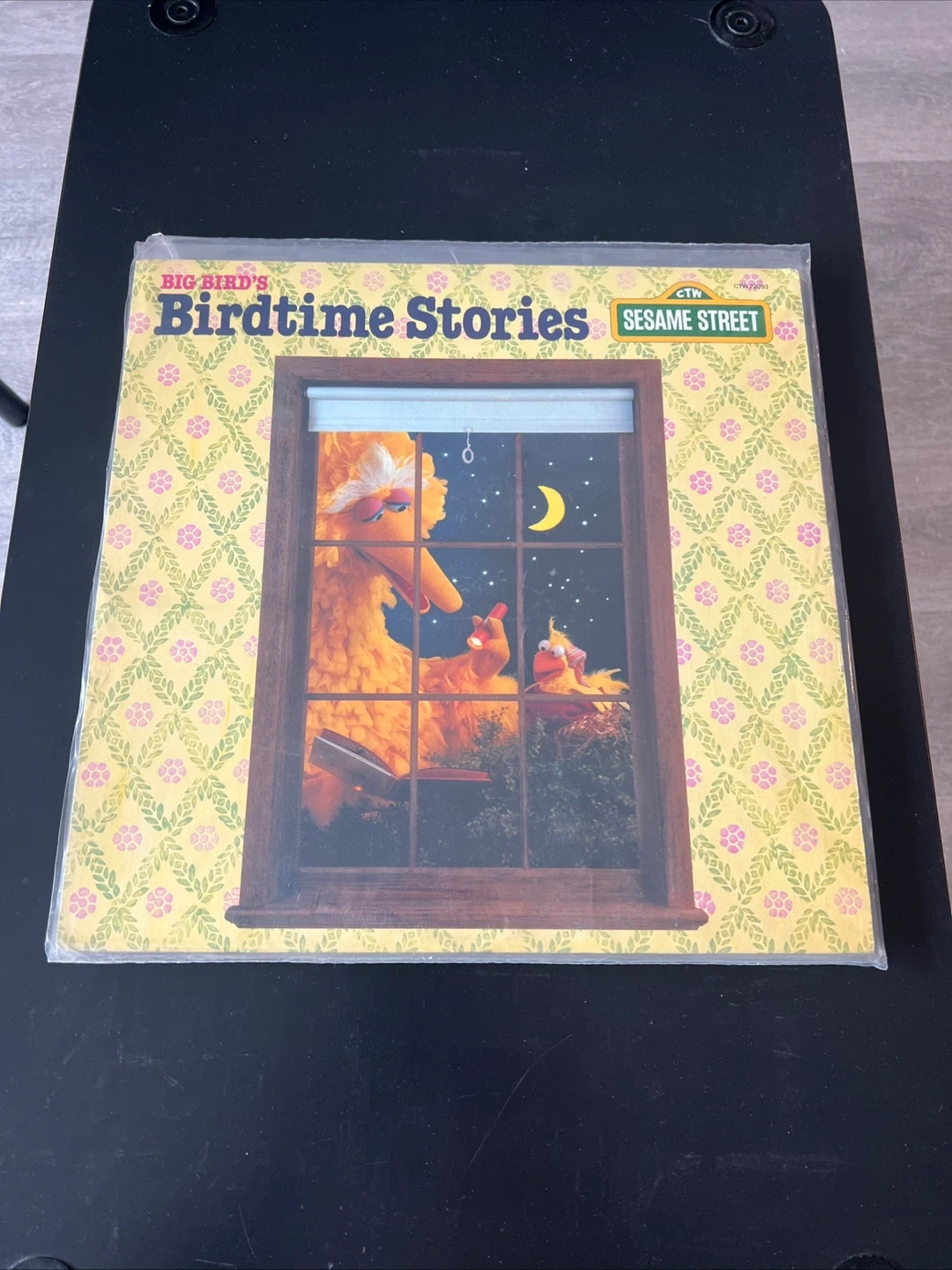 A vinyl record featuring Big Bird's Birdtime Stories from Sesame Street. Includes a full-colour illustrated book and long-playing record. Perfect for young children at bedtime.
