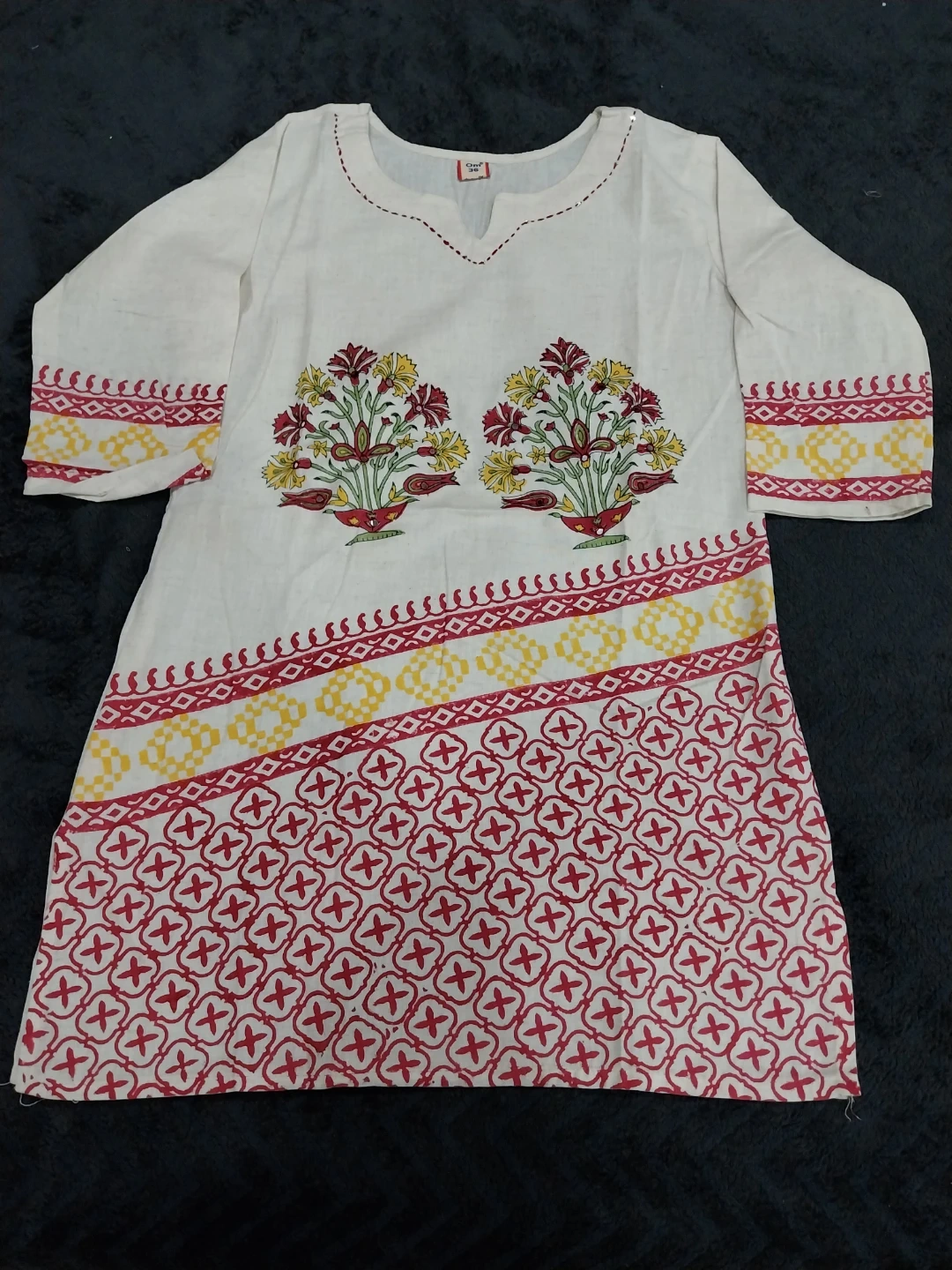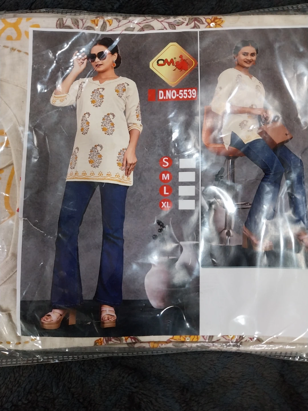 This CM clothing tunic top features a vibrant print. It's made of comfortable fabric. Available in sizes S, M, L, and XL.