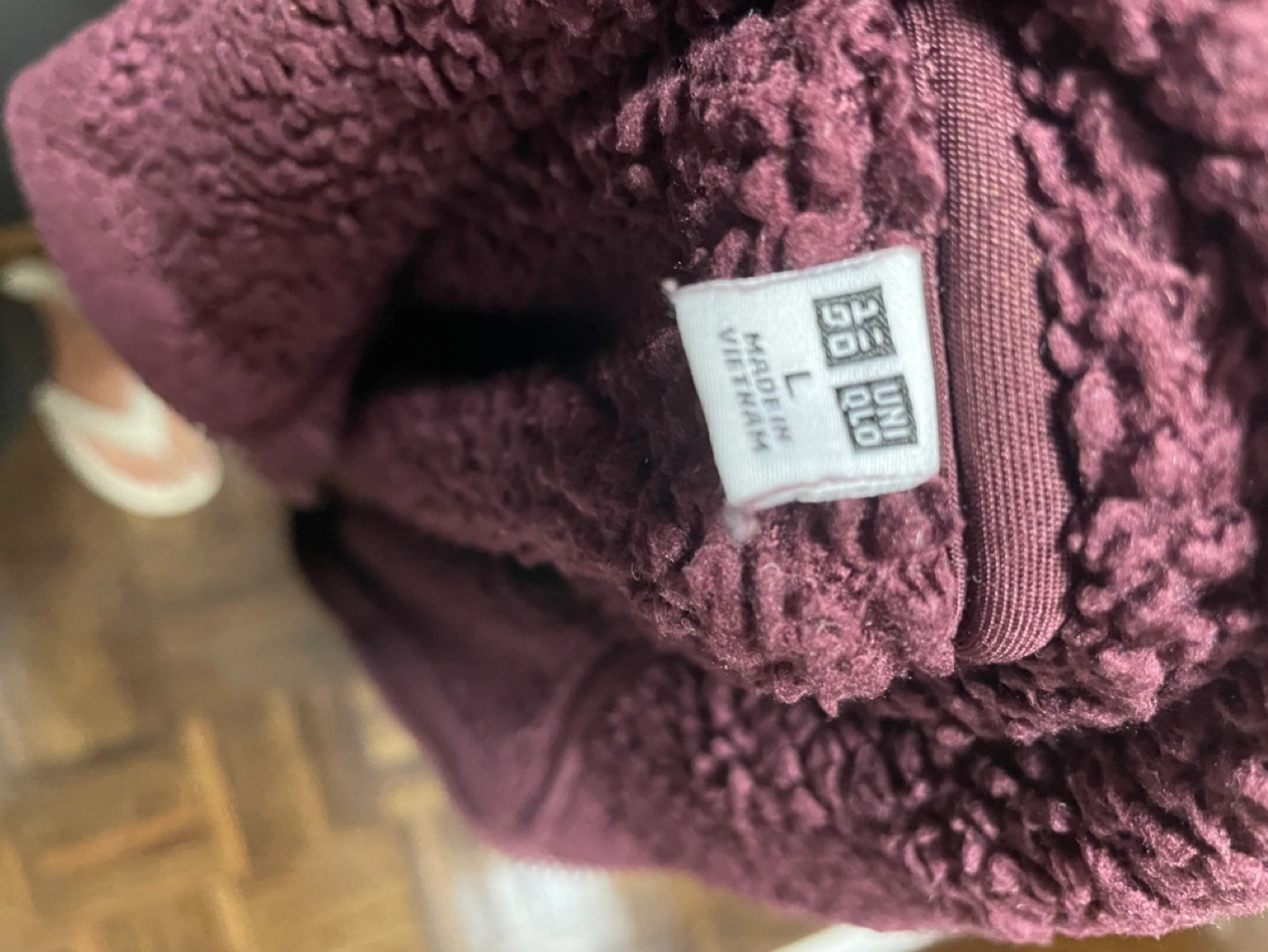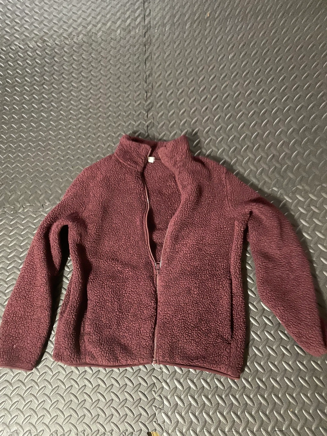 Burgundy fleece jacket with a zipper closure and two pockets. Size L.