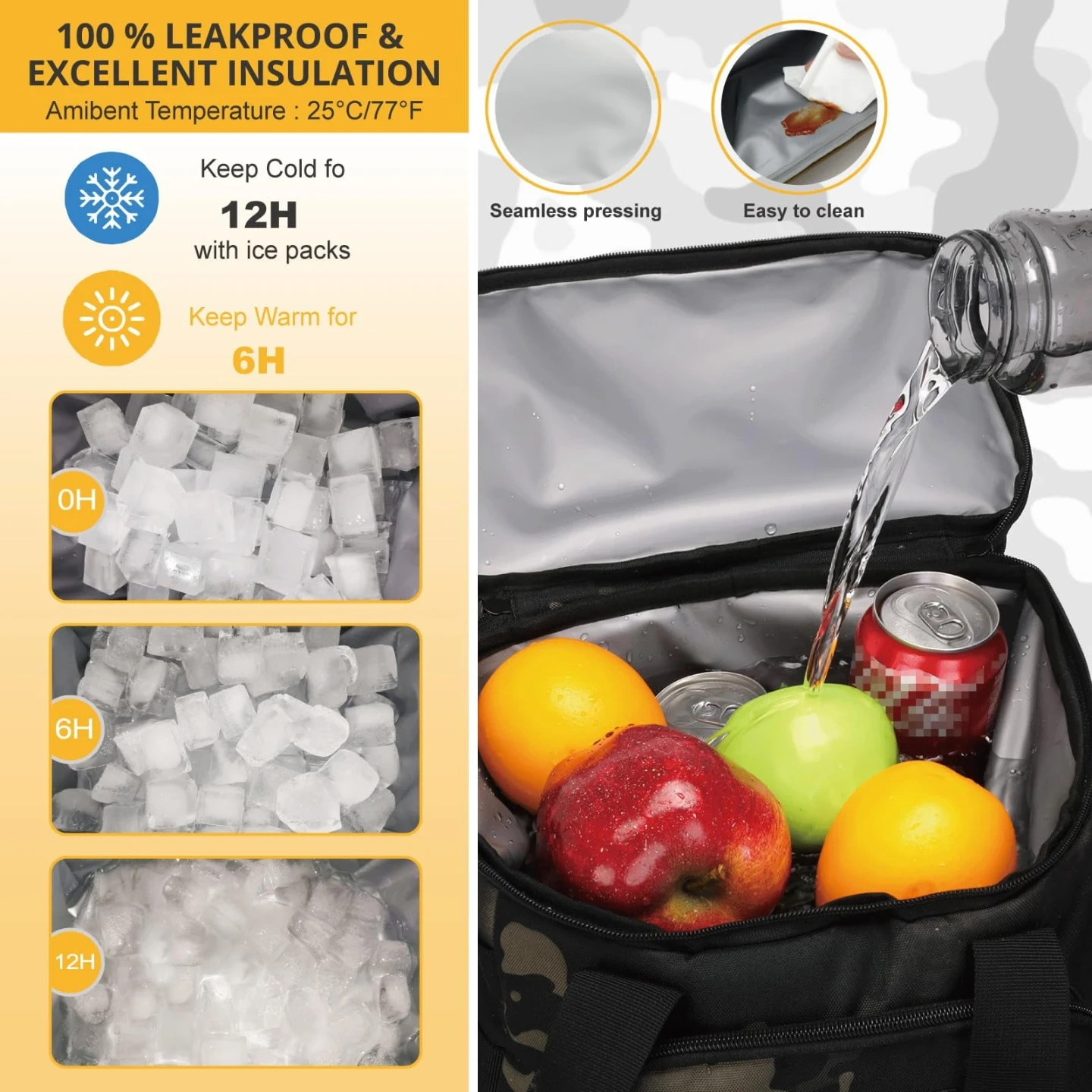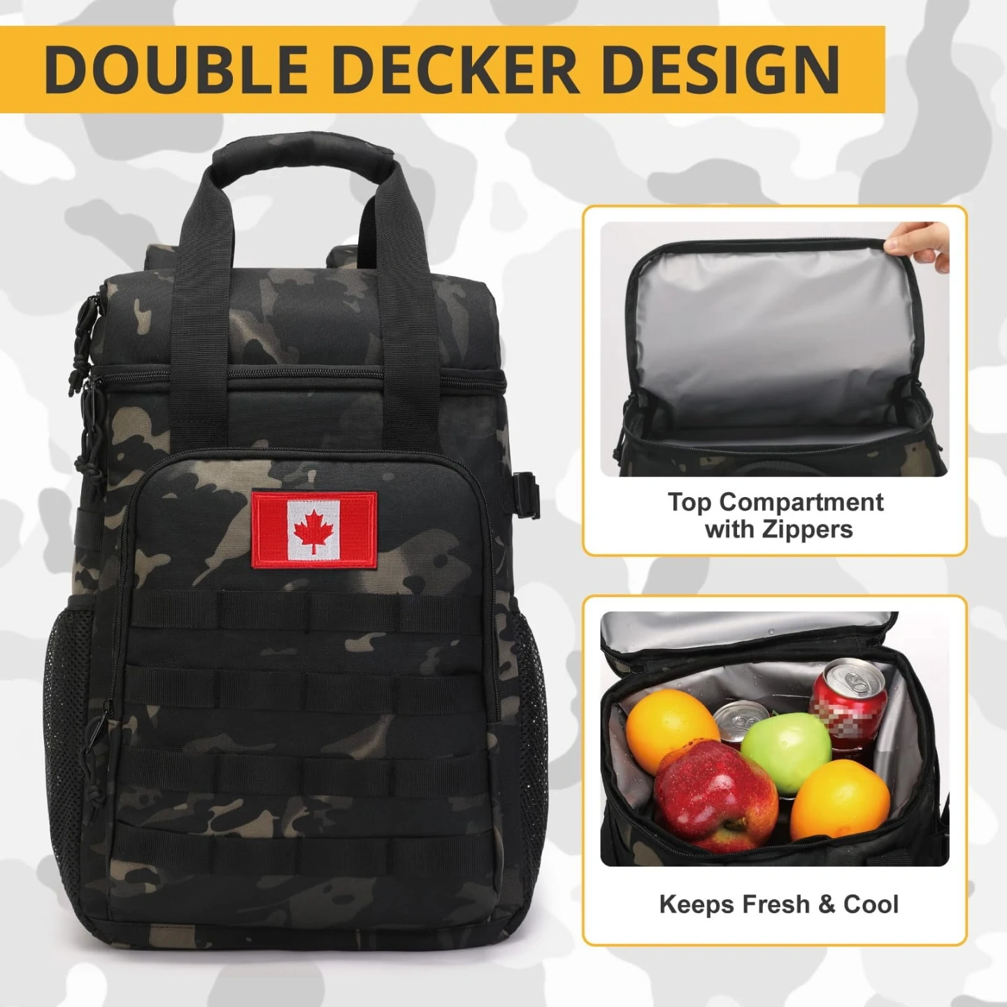 Tactical Cooler Backpack Black Camo Insulated Lunch Bag + Extra