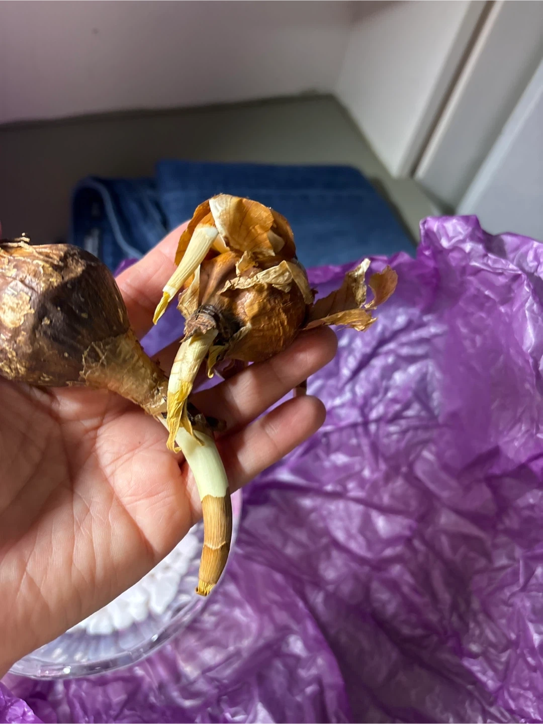 Decorative crystal glass bowl. Features etched leaf detailing on the rim and a faceted base. Contains dried flower buds. Perfect and ready to grow for paper white spring flower buds!