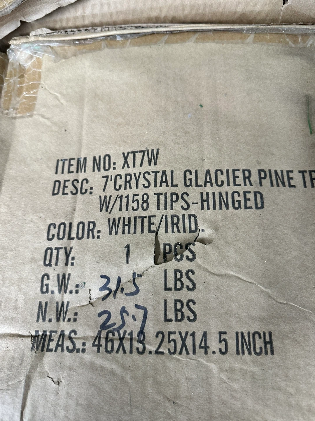 Buy & Sell7' Crystal Glacier Pine Tree - White/Irid7' Crystal Glacier Pine Tree - White/Irid$80This hinged Christmas tree has 1158 tips and a white/iridescent finish. It measures 7 feet tall. Assembly is required.WHERE TO MEETCheck LocationView MapSELLERPatriciaRiverdale W262 reviews0 chats·0 favorites·4 viewsSEND CHAT TO SELLERHi Patricia! I’m interested in your listing.Hi Patricia! I’m interested in your listing.Get the Karrot app to chatSign In to chat
