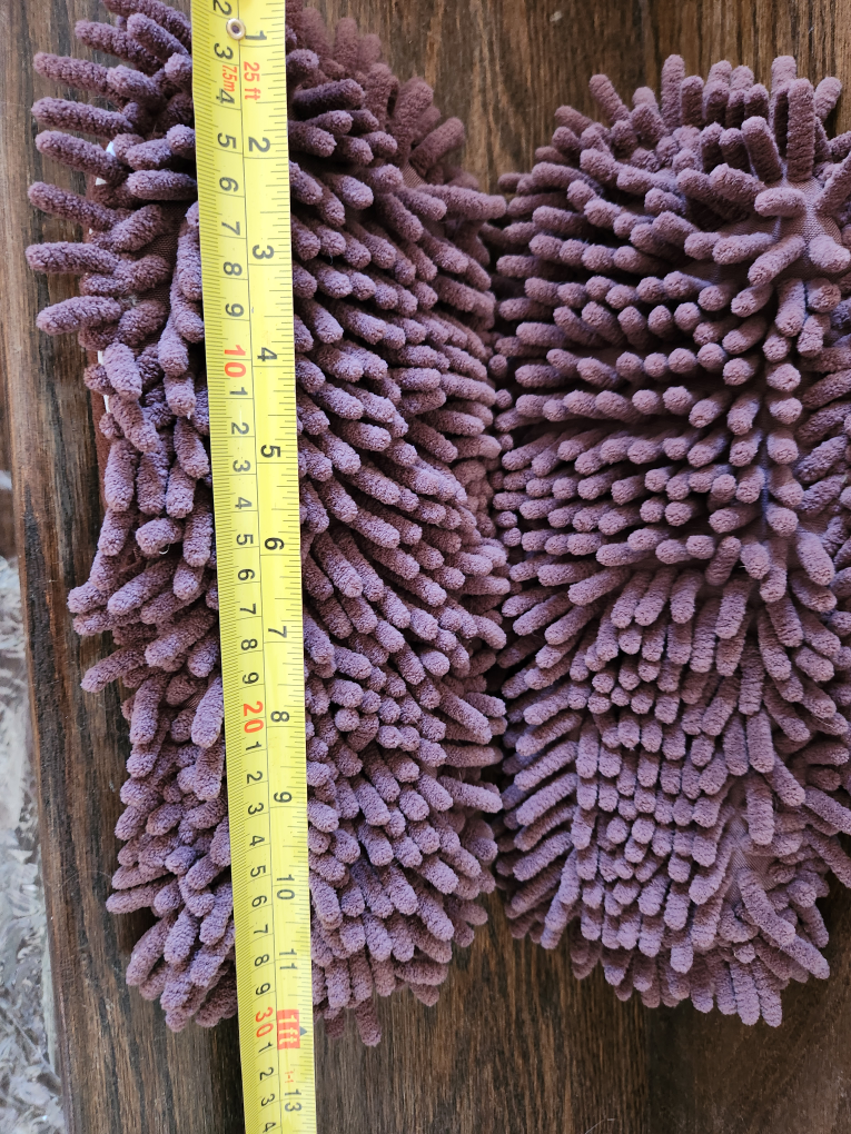 Keep your floors clean with these fun mop slippers! They're one size 12"long and made of a soft, absorbent material. Perfect for quick cleanups around the house.