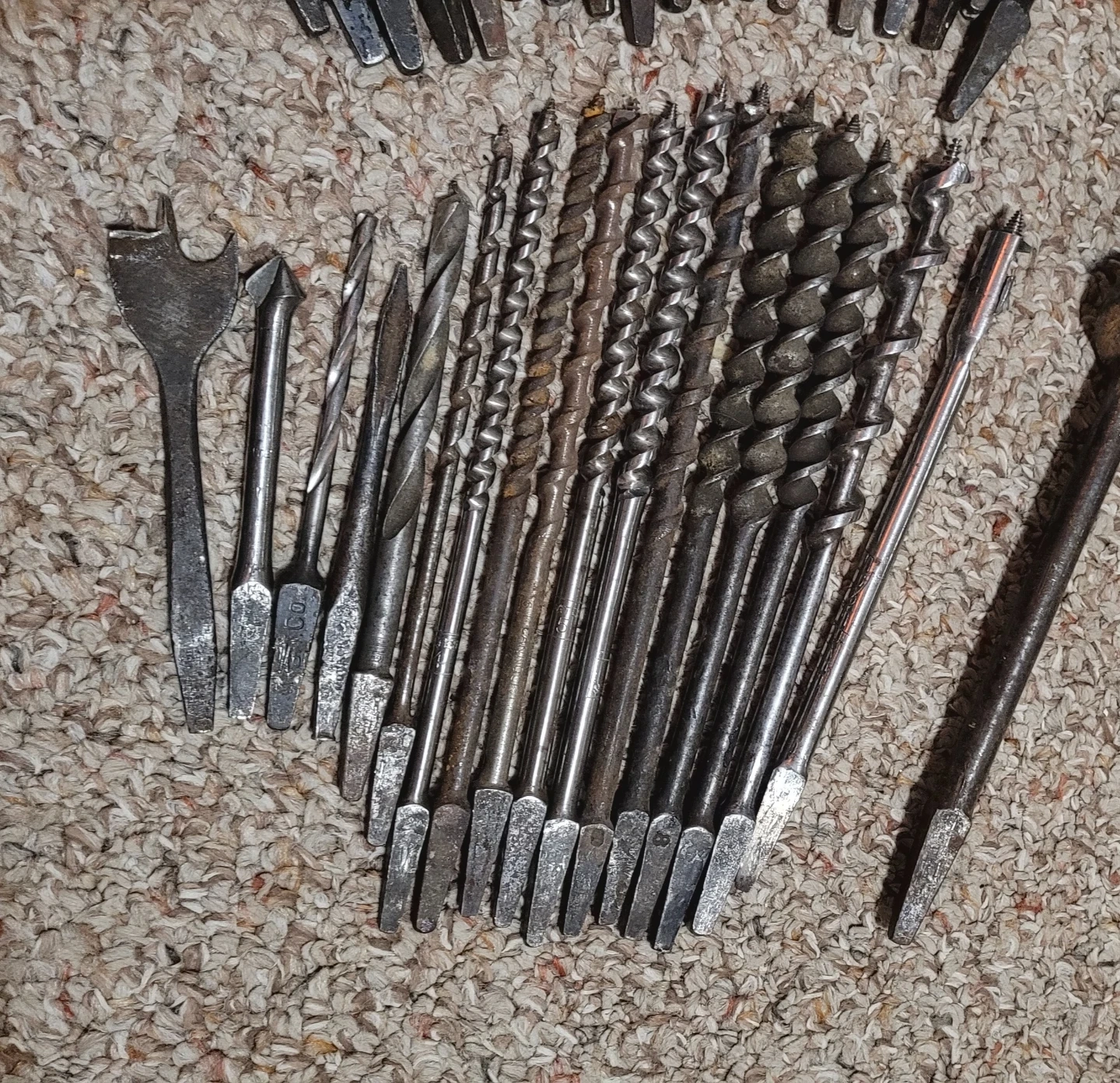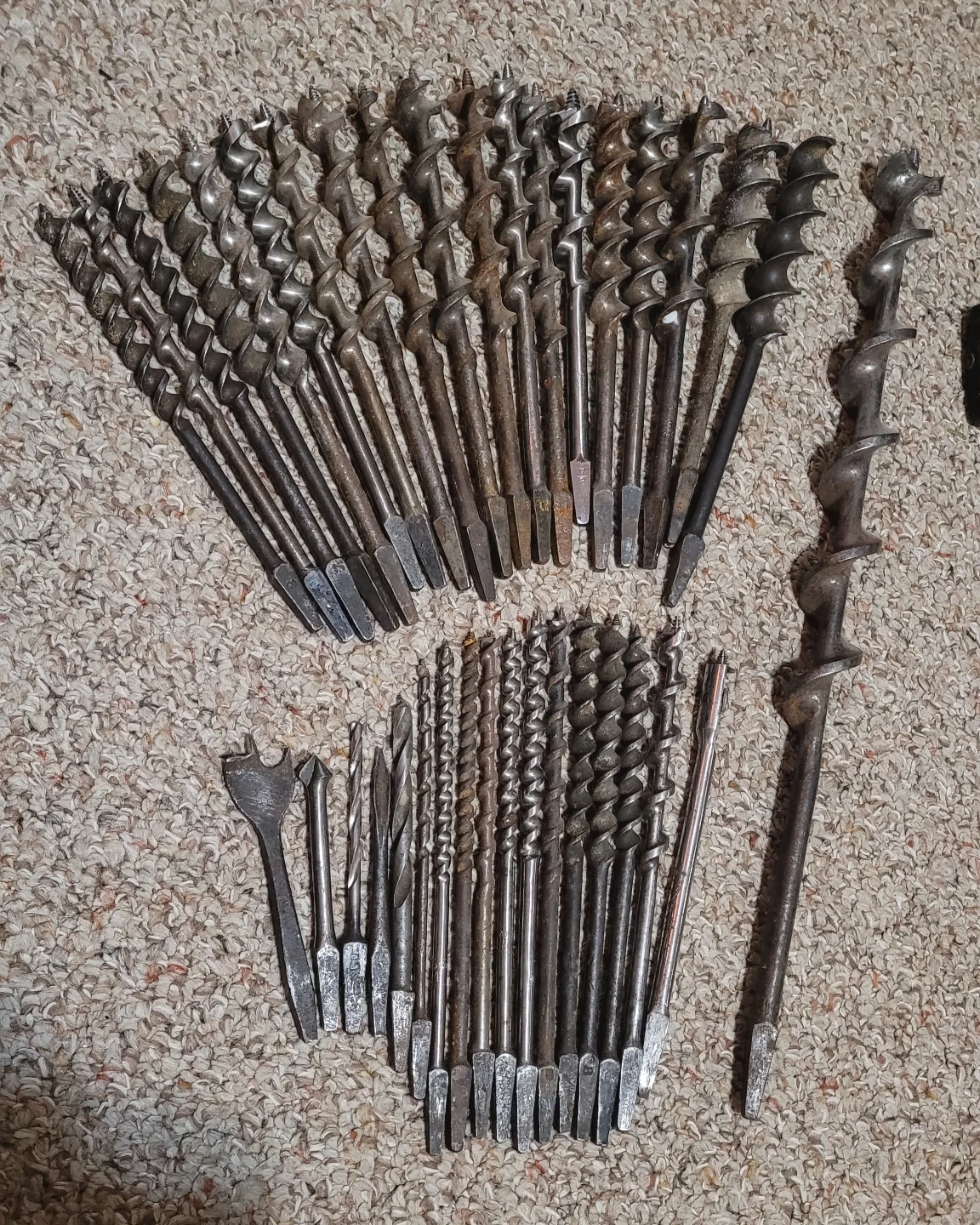 37 vintage drill auger bits various sizes. Big one on the right is 18" long. Asking $120 for all of them.