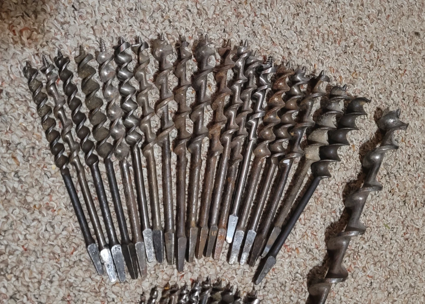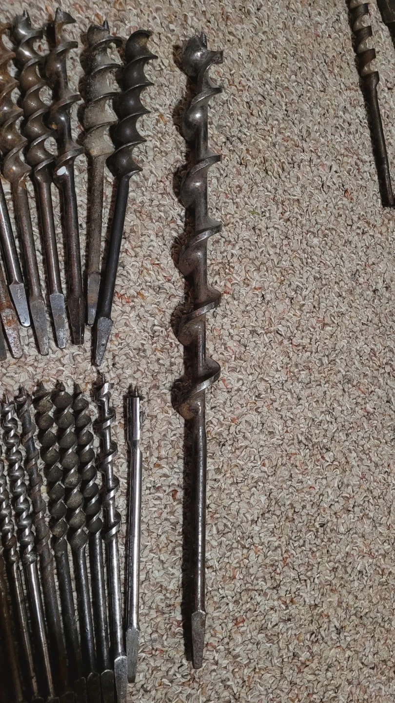 37 vintage drill auger bits various sizes. Big one on the right is 18" long. Asking $120 for all of them.