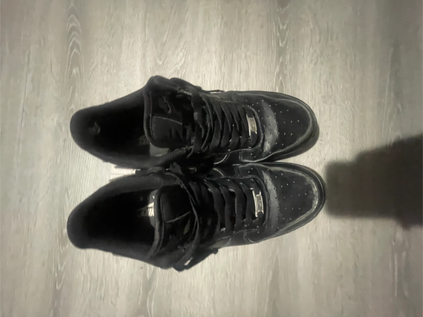 Selling a pair of Nike Air Force 1s in black with gold accents. They are used and show signs of wear, but still have lots of life left! Please see photos for condition(SEND ME YOUR BEST OFFER)