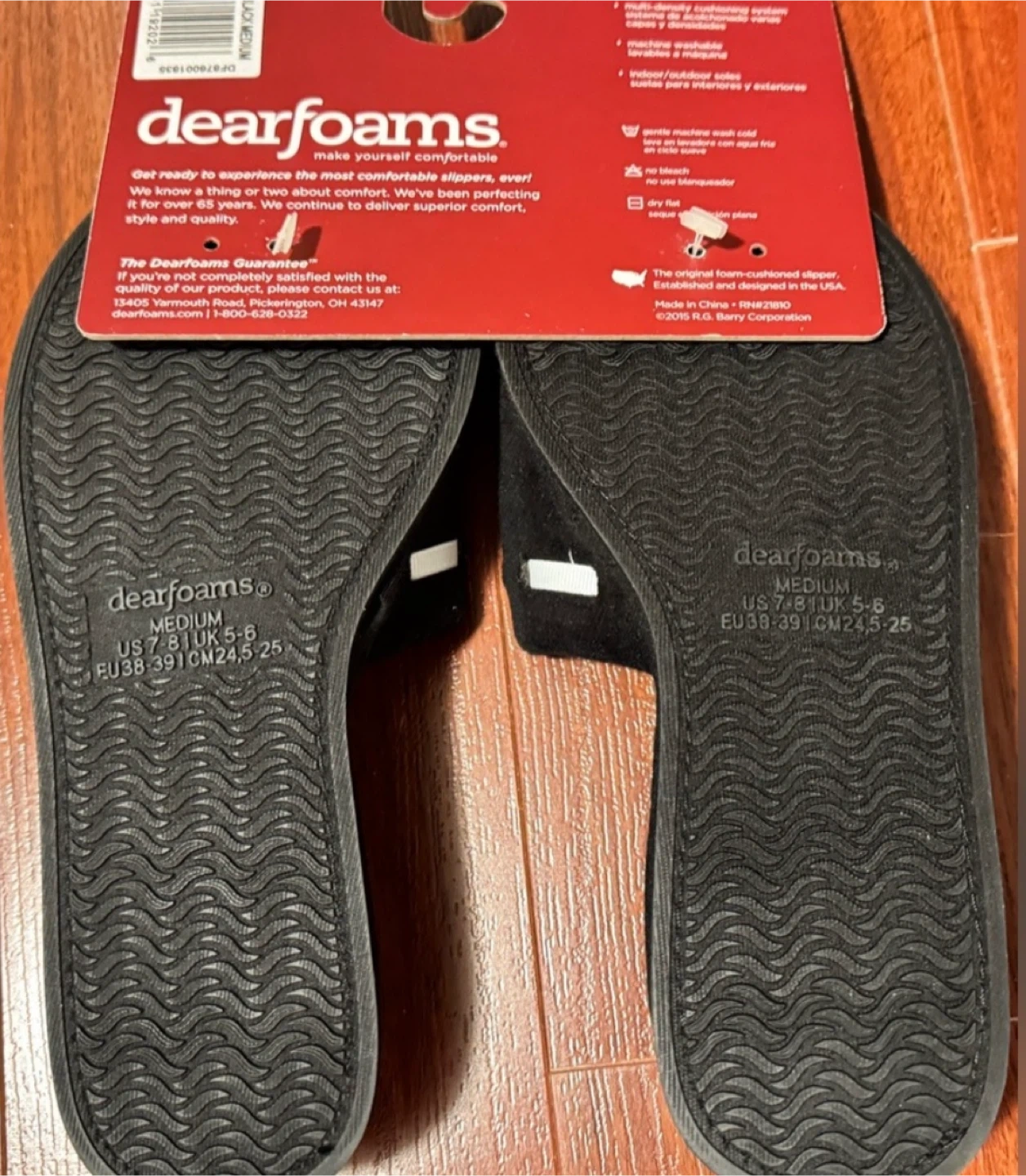 Cute pair of Dearfoams slippers in black with a white polka dot pattern and a little bow! They're a size medium (US 7-8). Super comfy and in great shape, ready to keep your feet cozy
