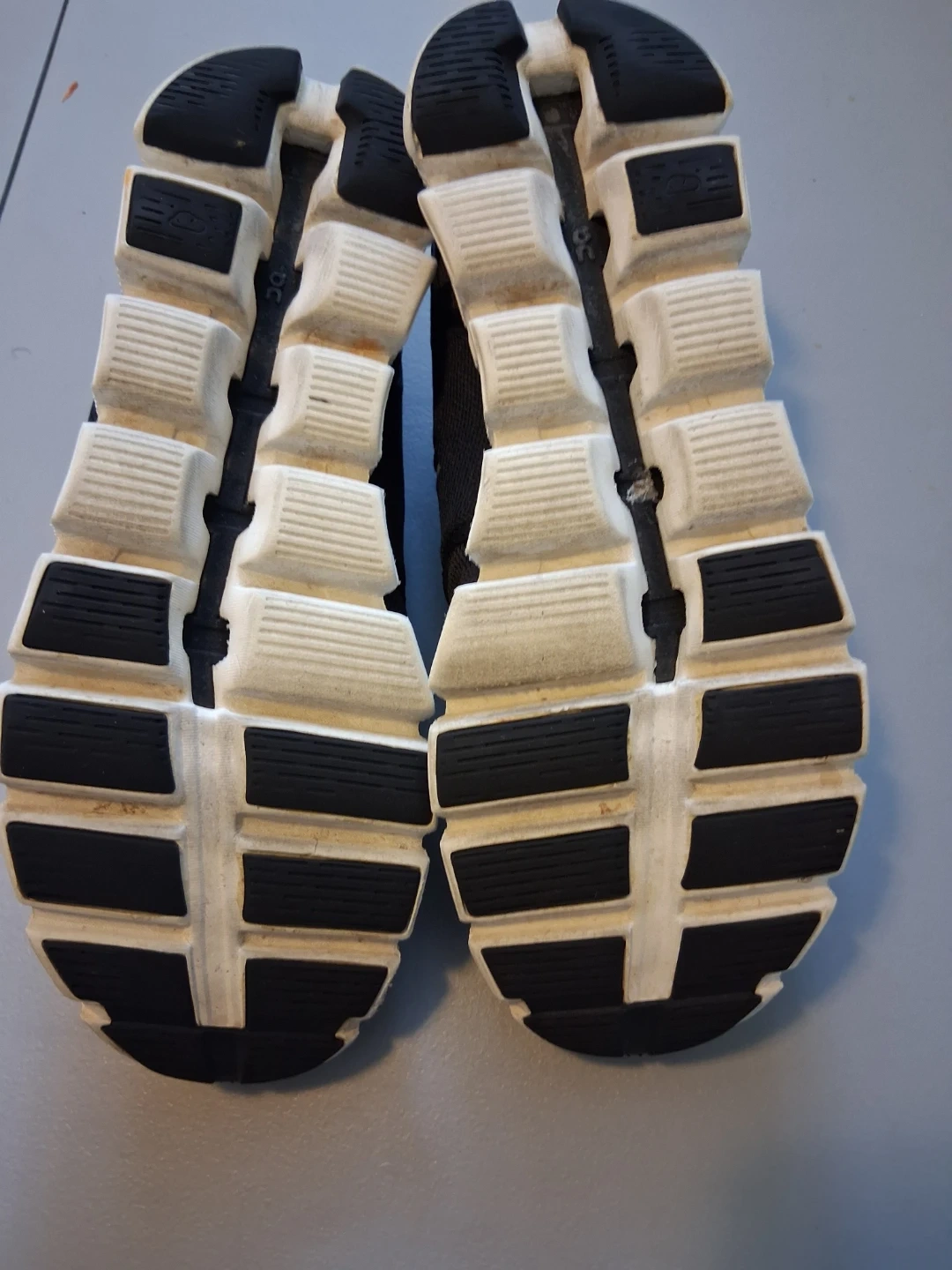 Selling a pair of On Cloud running shoes in black. They are in good condition and ready for a new owner. Great for running or everyday wear!