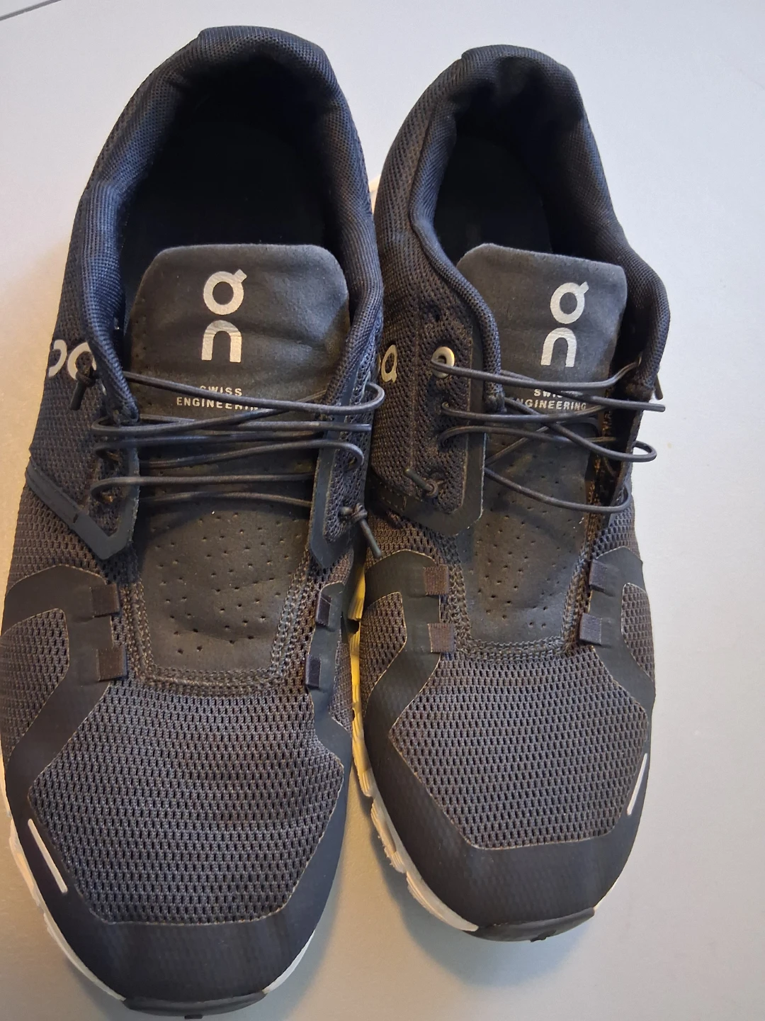 Selling a pair of On Cloud running shoes in black. They are in good condition and ready for a new owner. Great for running or everyday wear!