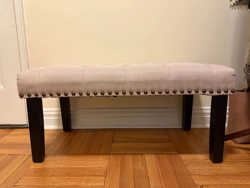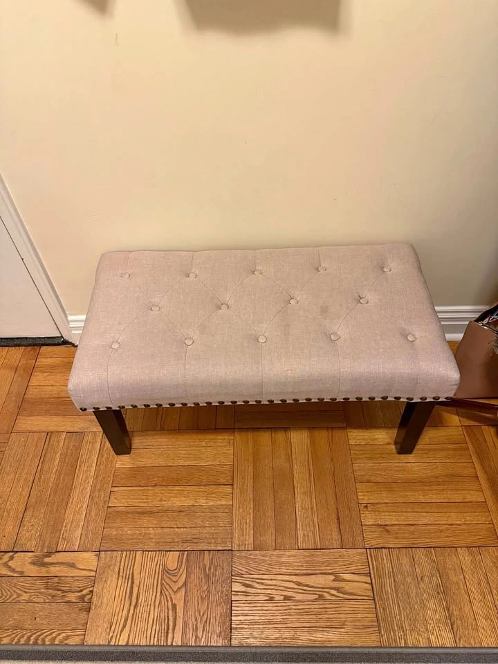 Buy & SellLight pink/ beige upholstered benchLight pink/ beige upholstered bench$40Great condition, great for entryway seating. 34.5” L x 18” W x 17” H.WHERE TO MEETCheck LocationView MapSELLERDeepika PDowntown Brooklyn100 reviews0 chats·0 favorites·4 viewsSEND CHAT TO SELLERHi Deepika P! I’m interested in your listing.Hi Deepika P! I’m interested in your listing.Get the Karrot app to chatSign In to chat