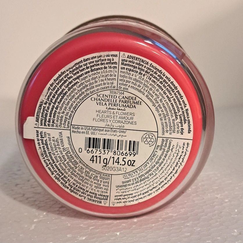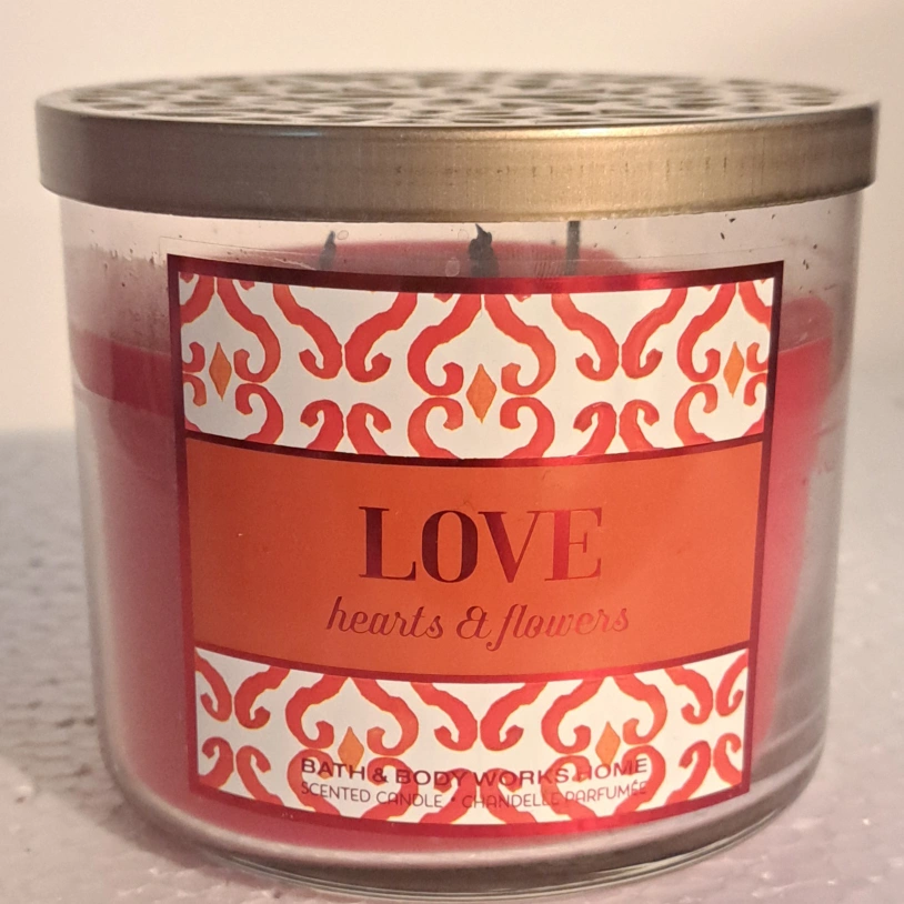 3-wick scented candle in glass jar with lid. Used, wax level has dropped around 1.5cm at deepest point. This line of candles was available around 8-10 years ago and has been discontinued.