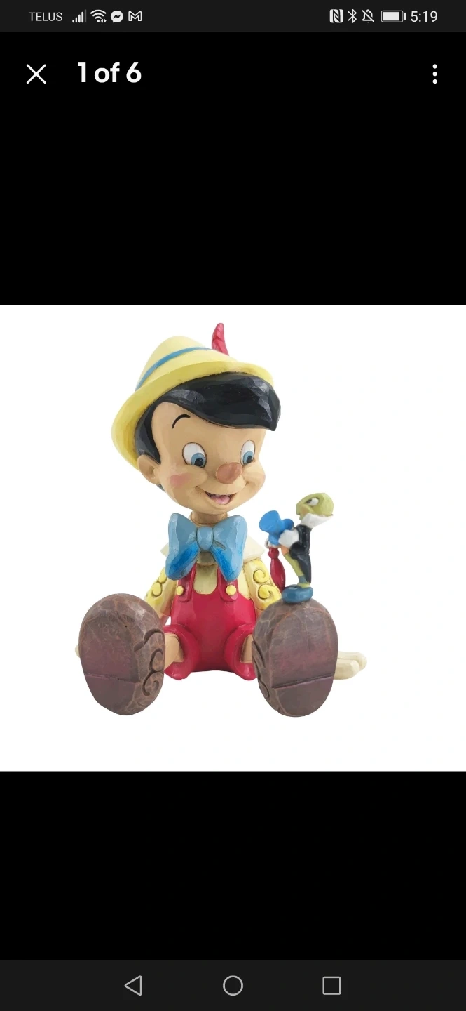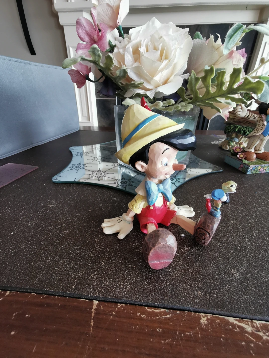 A sweet Disney figurine featuring Pinocchio sitting with Jiminy Cricket. It's 6 inches tall. This would make a lovely addition to a Disney collector's display!