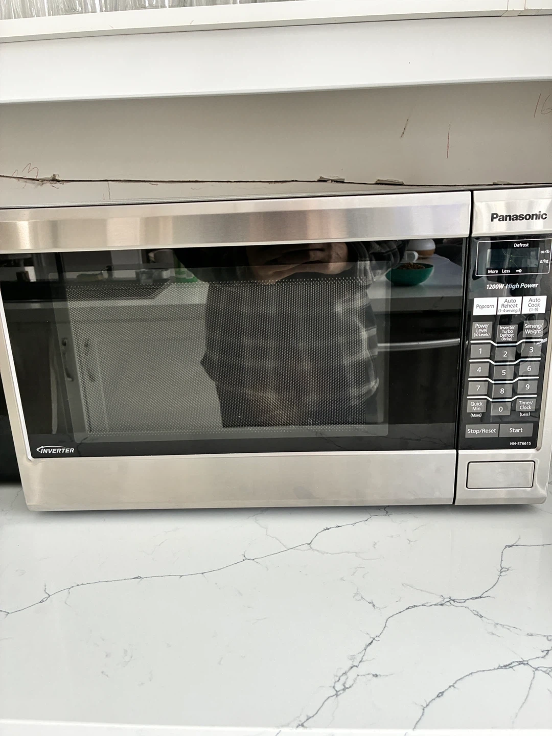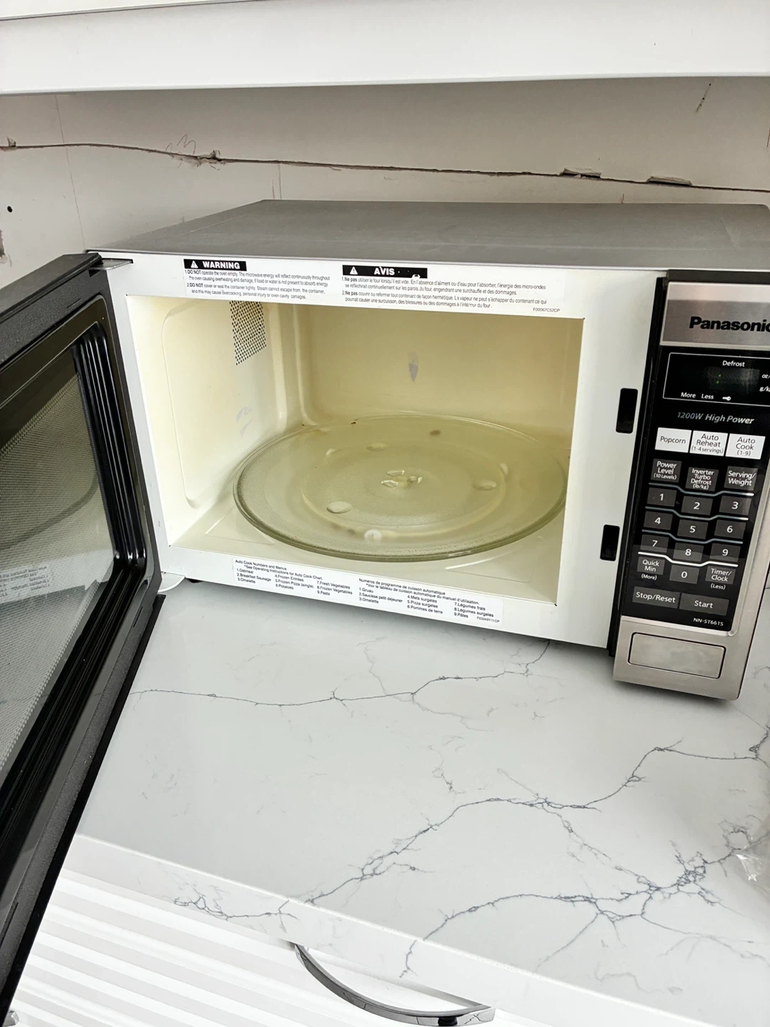 Selling a Panasonic 1200W High Power Inverter Microwave. It's in good working condition and ready for a new kitchen!