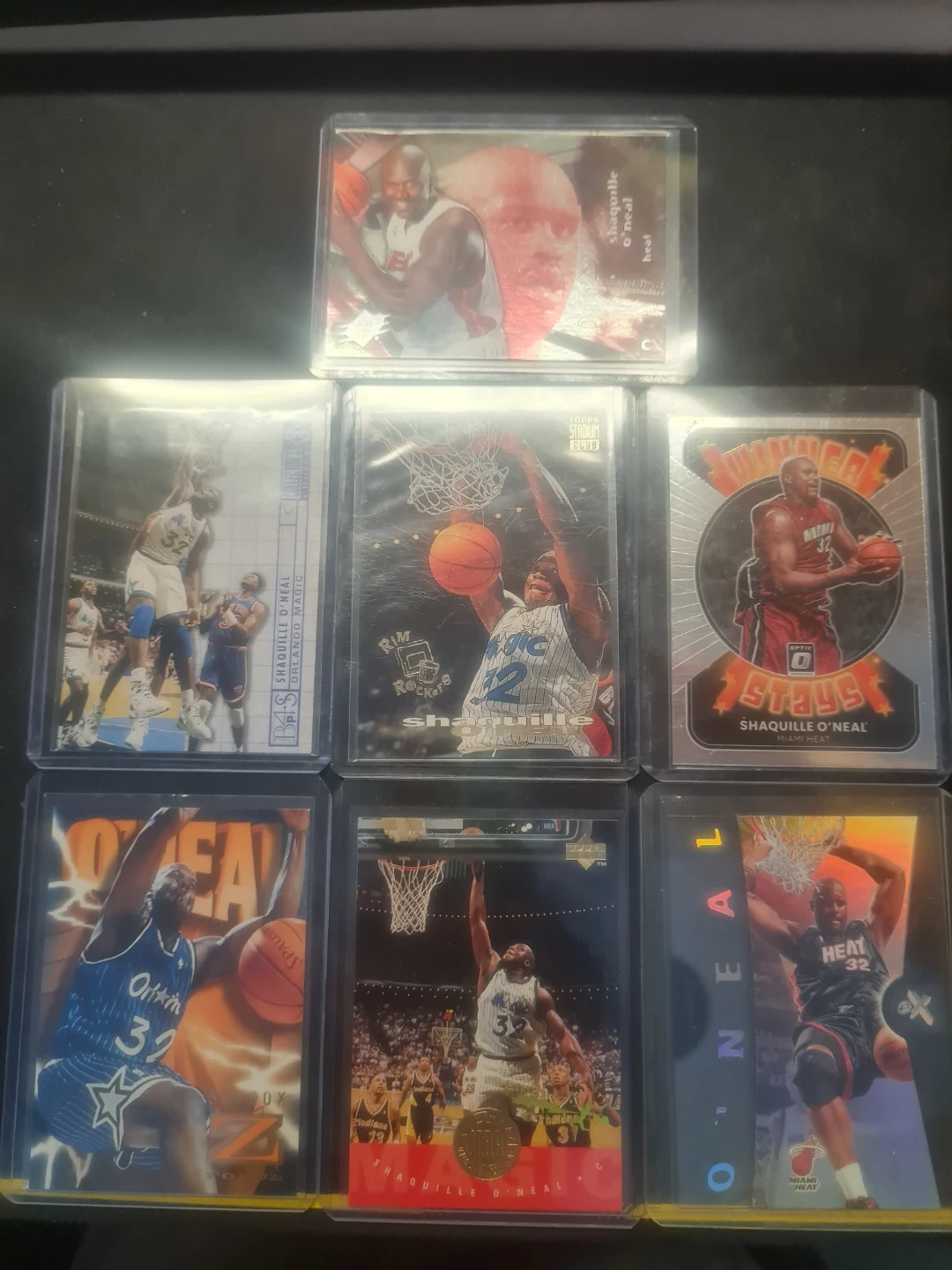 Collection of six Shaquille O'Neal basketball cards. Includes cards from his time with the Orlando Magic and Miami Heat. Great additions for any basketball card collector!