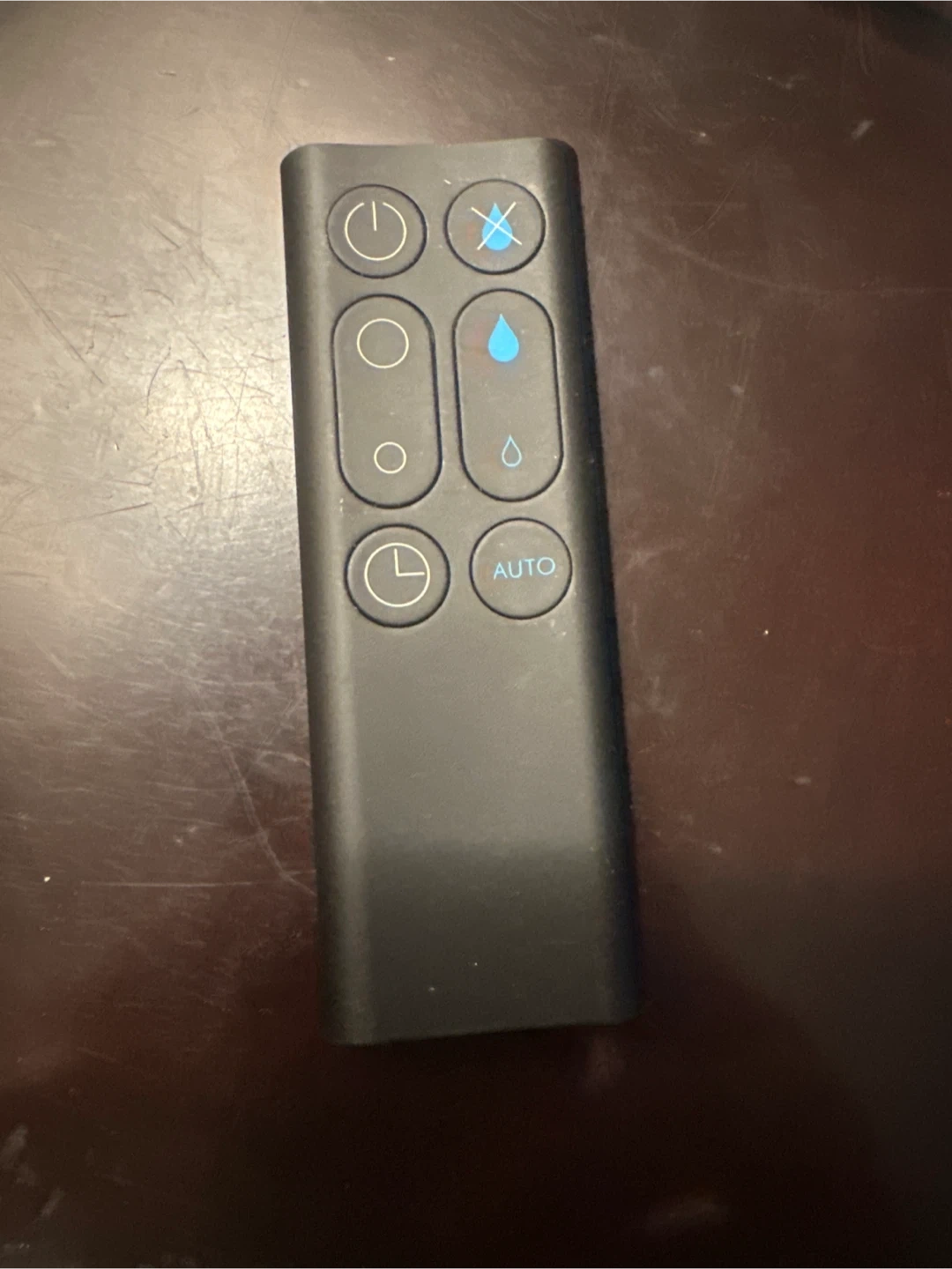 This is a Dyson remote control. It features buttons for power, fan speed, oscillation, and auto mode. Includes timer settings. Perfect for controlling Dyson fans and air purifiers.