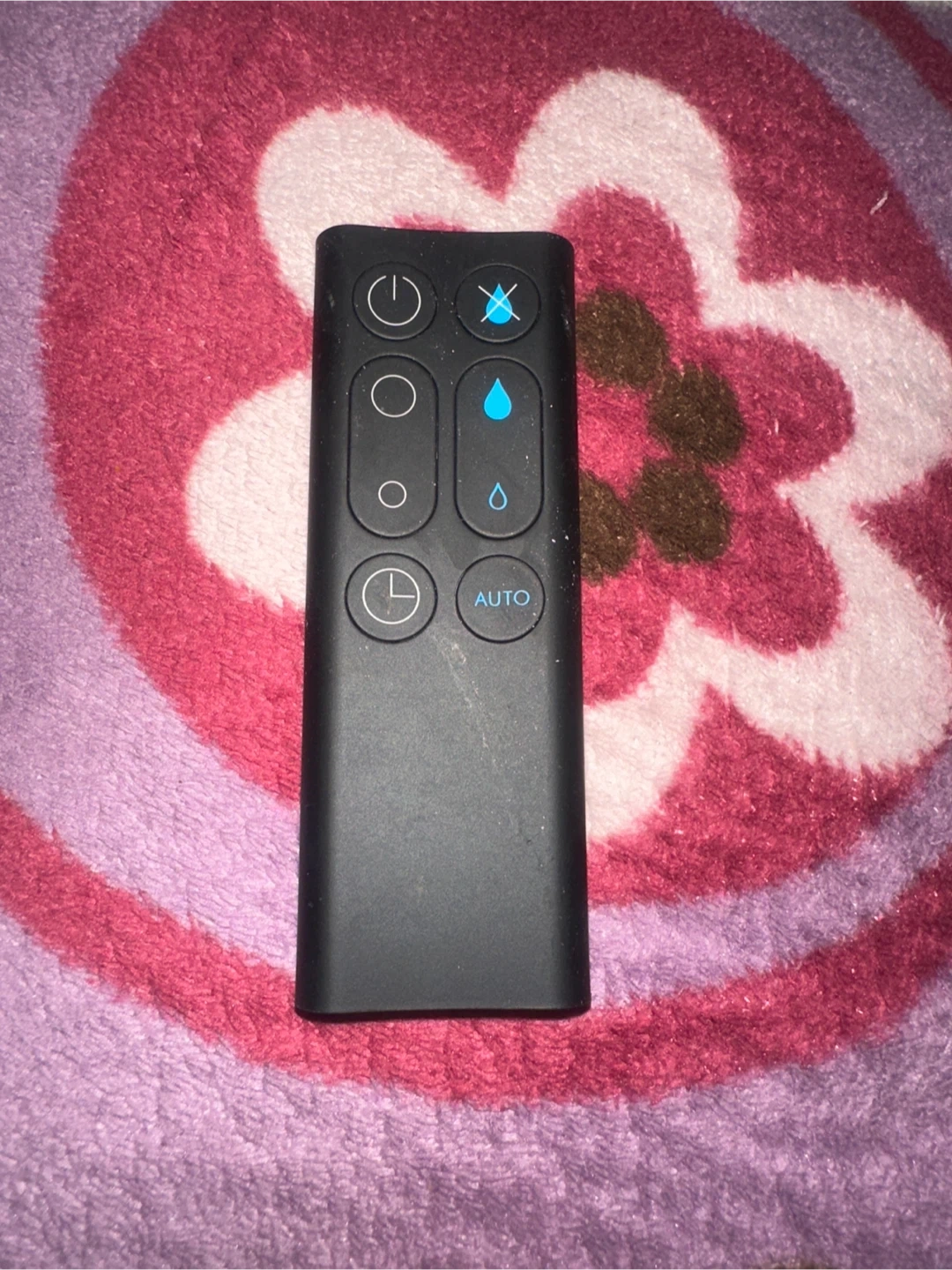 This is a Dyson remote control. It features buttons for power, fan speed, oscillation, and auto mode. Includes timer settings. Perfect for controlling Dyson fans and air purifiers.