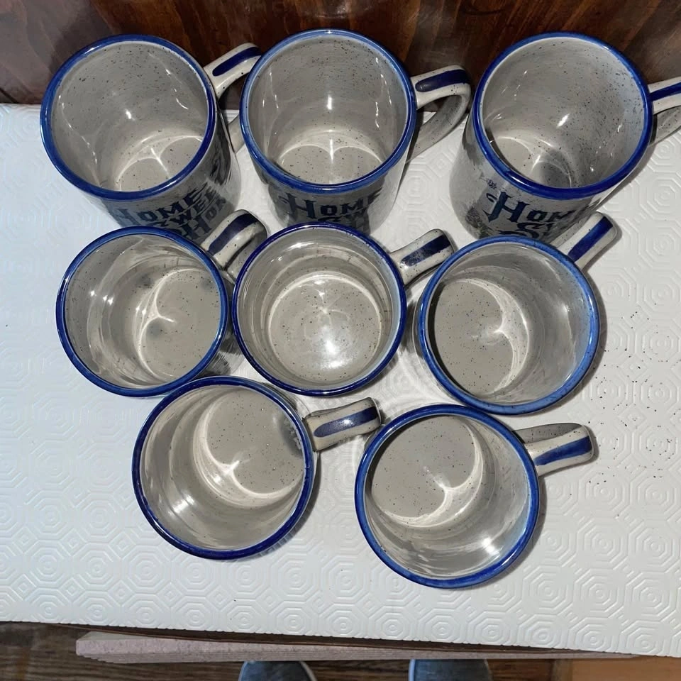 The only damage is one cup with a quote has a crack. Otherwise, no other flaws. There are 19 pieces in total, including lids.
