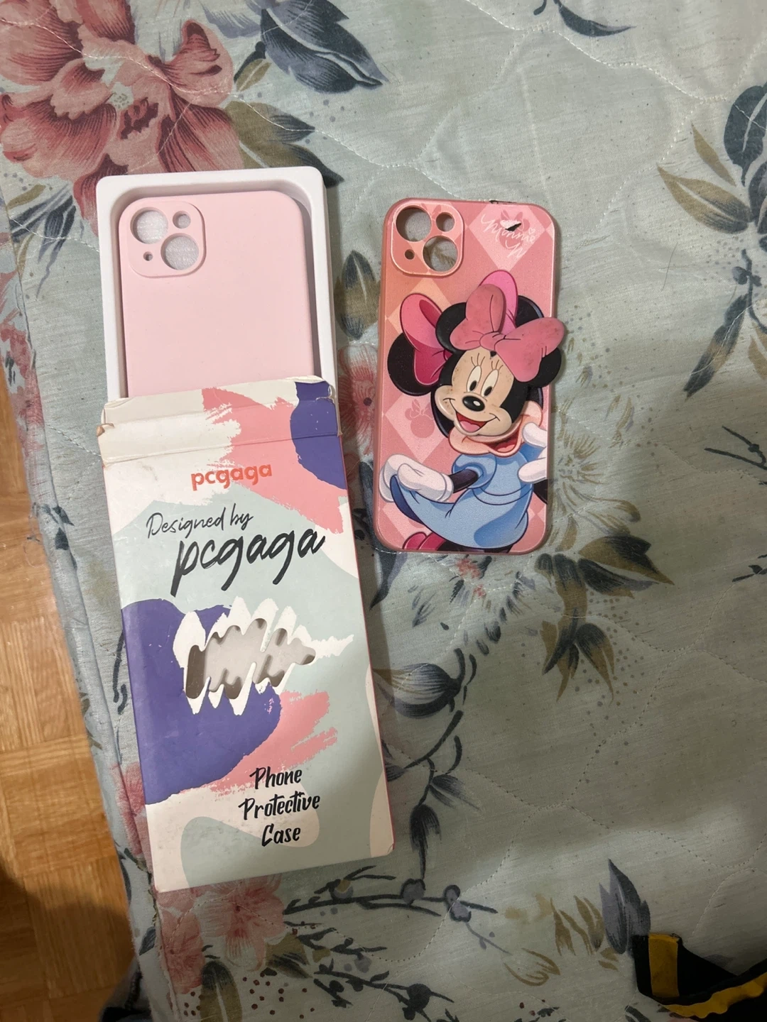 This is a pink PCGAGA phone protective case designed by PCGAGA, featuring Minnie Mouse. It's designed for the iPhone 11. The case comes in its original packaging.