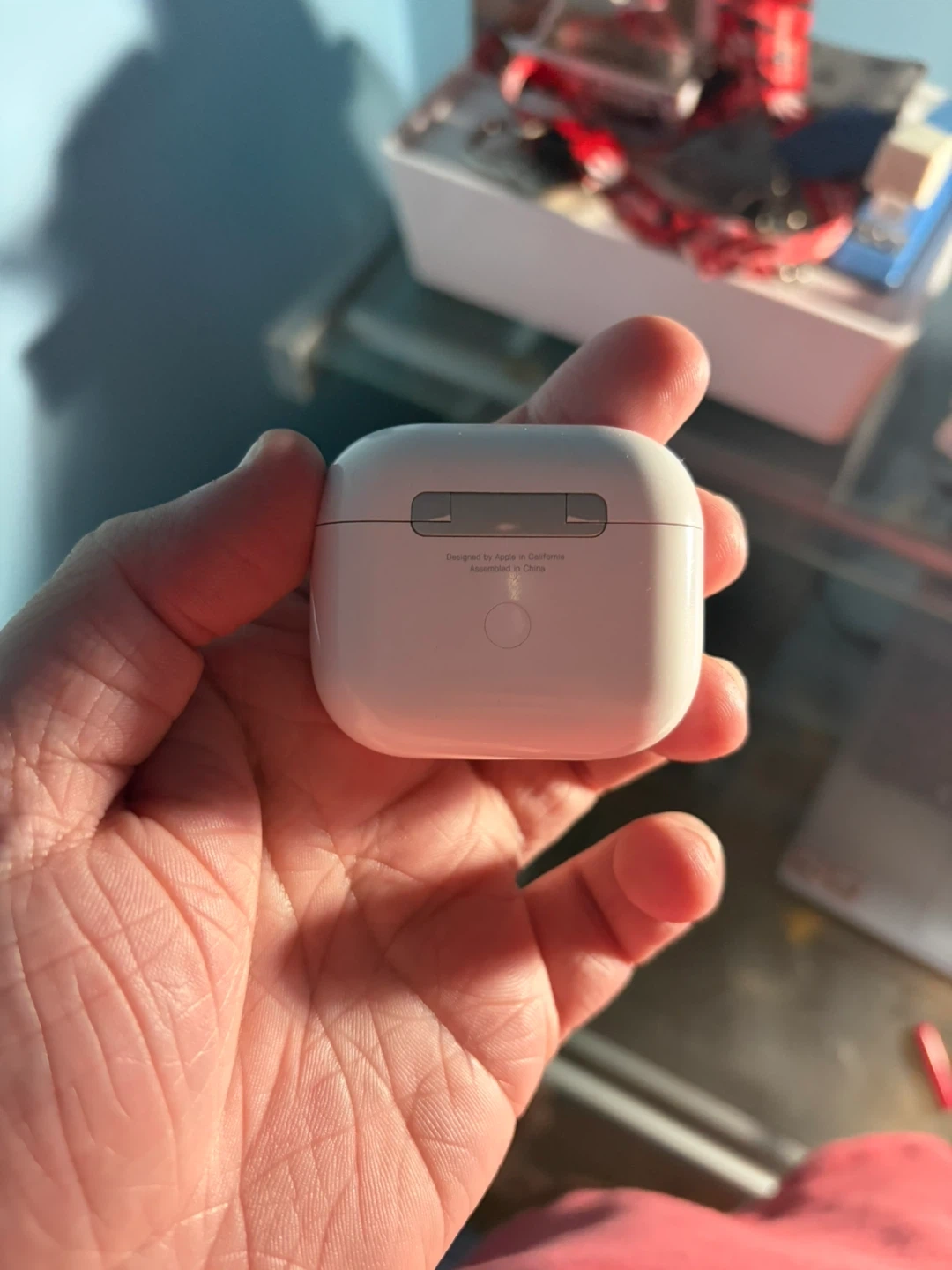 This is a white charging case for Apple AirPods 3rd Generation. It's designed in California and assembled in China. The case is needed to charge your AirPods 3rd Gen’s