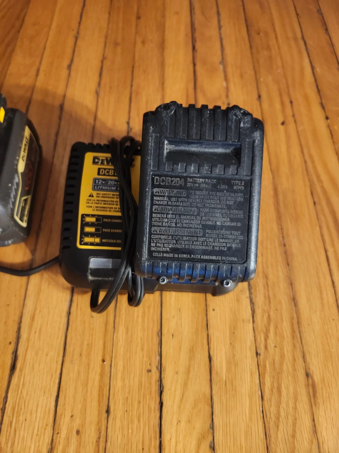 DeWalt cordless work light with one DCB204 battery pack and charger. The light is fully functional and shines bright. Includes the original charger for the battery. It's a great light for any job site or power outage! Two batteries and charger