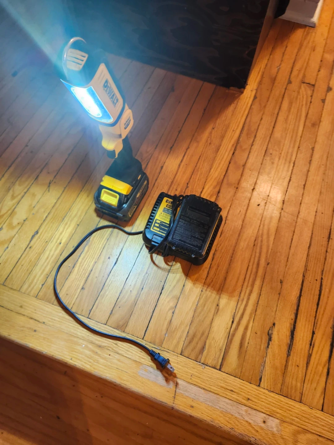 DeWalt cordless work light with one DCB204 battery pack and charger. The light is fully functional and shines bright. Includes the original charger for the battery. It's a great light for any job site or power outage! Two batteries and charger