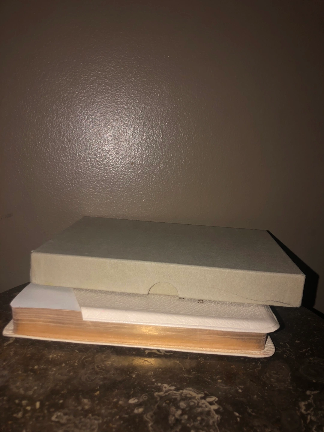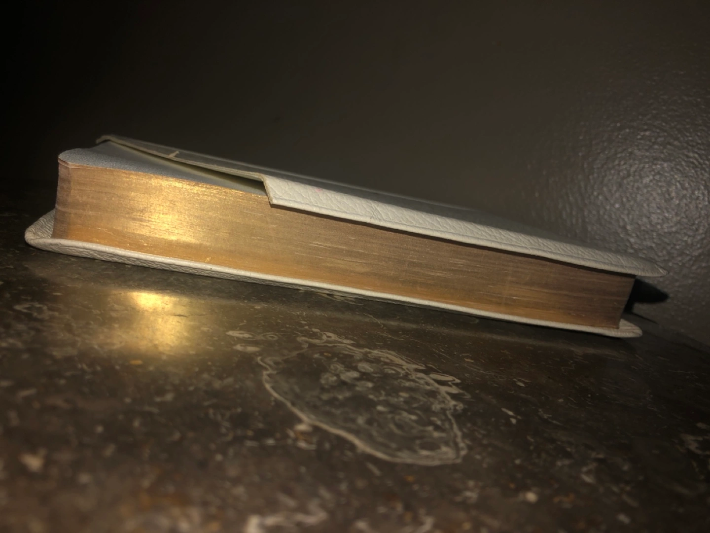 Full leather, flexible, washable cover, divinity circuit, white. Includes box.