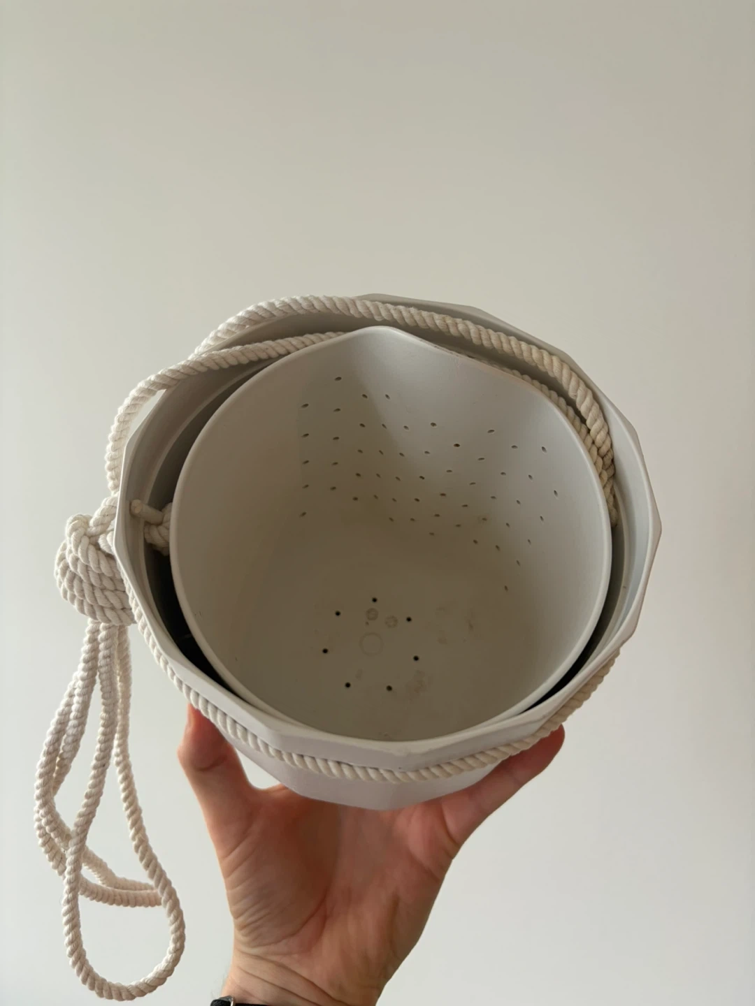 White Hanging Planter with Rope